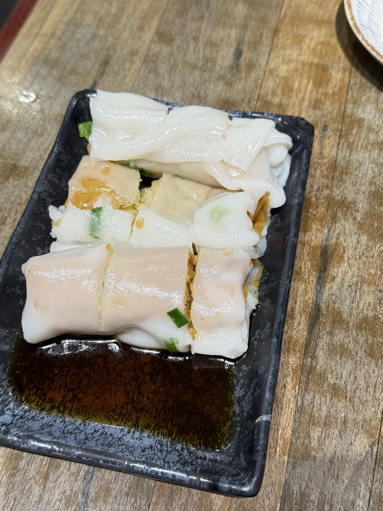 어느 정도 기다리다 보니 음식이 나왔다. 제일 먼저 나온 메뉴는 크리스피 창펀이었다. 창펀은 진짜 처음 들어보는 메뉴여서 어떨지 상상이 안 되었는데 음식 나온 것을 보니 아 이게 창펀이구나를 알게 되었다. 한국 음식과 비교하자면 메밀 전병 같은 생김새였다. 음식 문화만 찾아보고 정작 중요한 음식은 검색하지 않고 온 허점은 있다. 맛이 어떨지 상상이 안돼서 사진을 찍고 바로 한입을 먹어보았다. 아니 세상에나. 이렇게 맛있는 음식이 있었는데 여태껏 모르고 살았다니. 크리스피 창펀이라 그런지 바삭하면서 달달 고소하면서 굉장히 맛있었다. 새콤 달달한 소스와 함께 먹으니 정말 맛있었다. 창펀을 먹고 홍콩에서의 기대감은 하늘을 향해 솟게 되었다. 동생과 먹으면서 오길 정말 잘했다. 이거 진짜 맛있다만 몇 번이나 반복해서 말했는지도 모르겠다. 그 정도로 정말 맛있었다.
