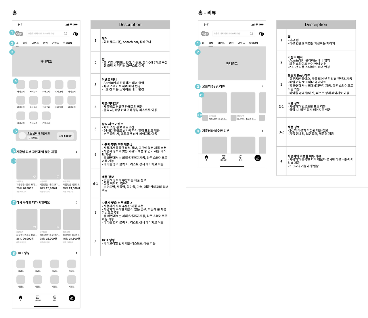 먼저 이번 포스팅에 앞서 지난 포스팅에서 메인 화면에 리뷰 탭을 추가한 화면을 제안했었다.