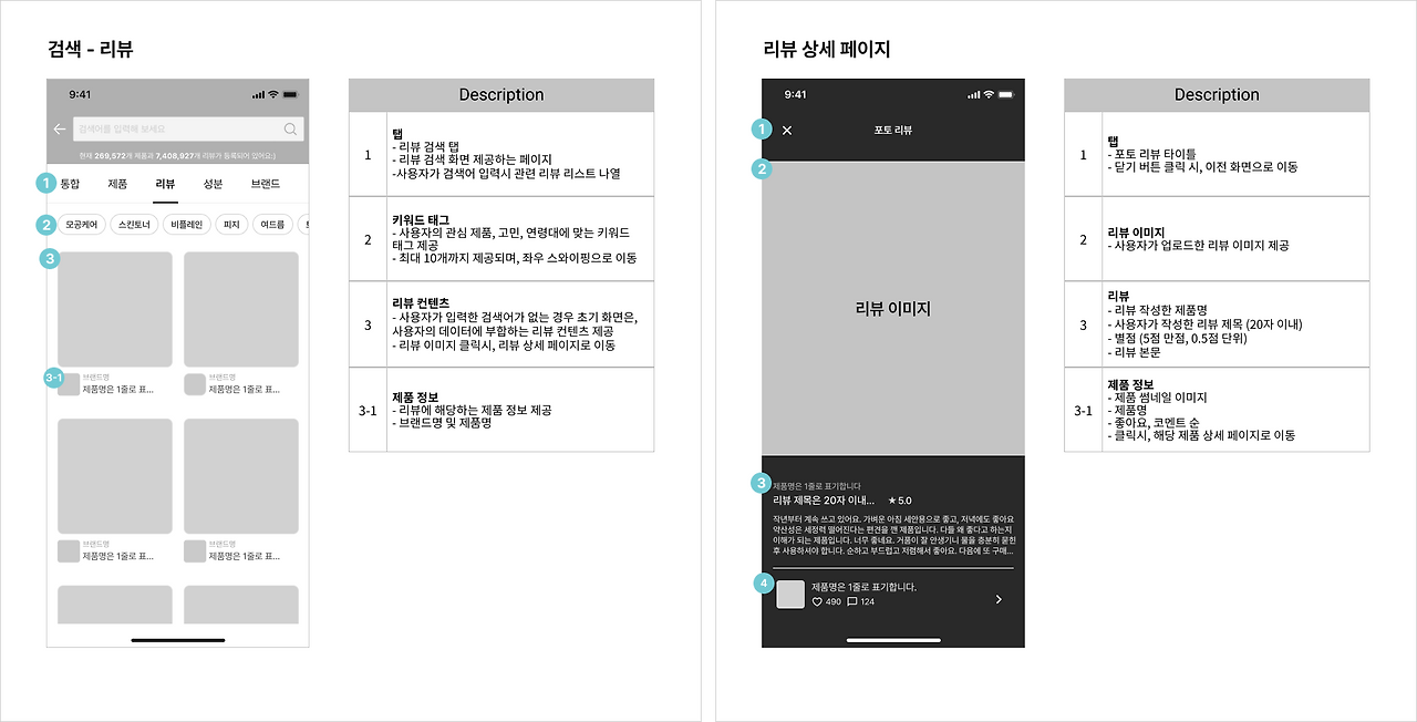내가 기획한 화면은 리뷰 탭에서 전체 제품에 대한 리뷰를 보여주는 컨텐츠라면, 화해는 현재 새로 밀고 있는 색조 발색에 대한 컨텐츠를 추가했다는 점 빼고는 유사한 화면이어서 매우 신기하고 감회가 남달랐다. (화해 관계자 분들 혹시 보고 계신다면...좋아요 부탁드립니다..)