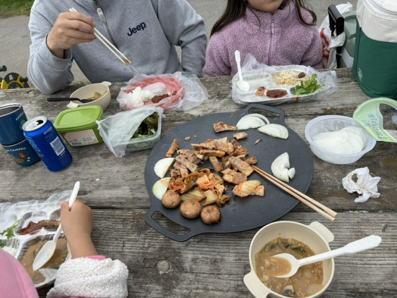사실 오전에도 천둥 번개가 치고 캠핑장에 우리 텐트 혼자 남아 있었지만 집에 갈 생각은 안 했다. ㅎㅎ..