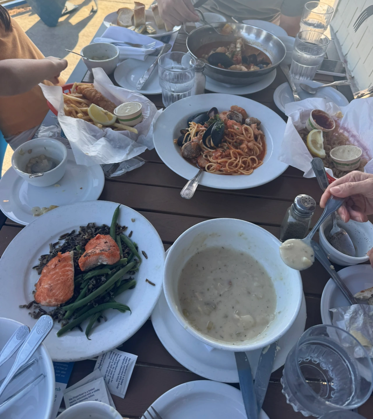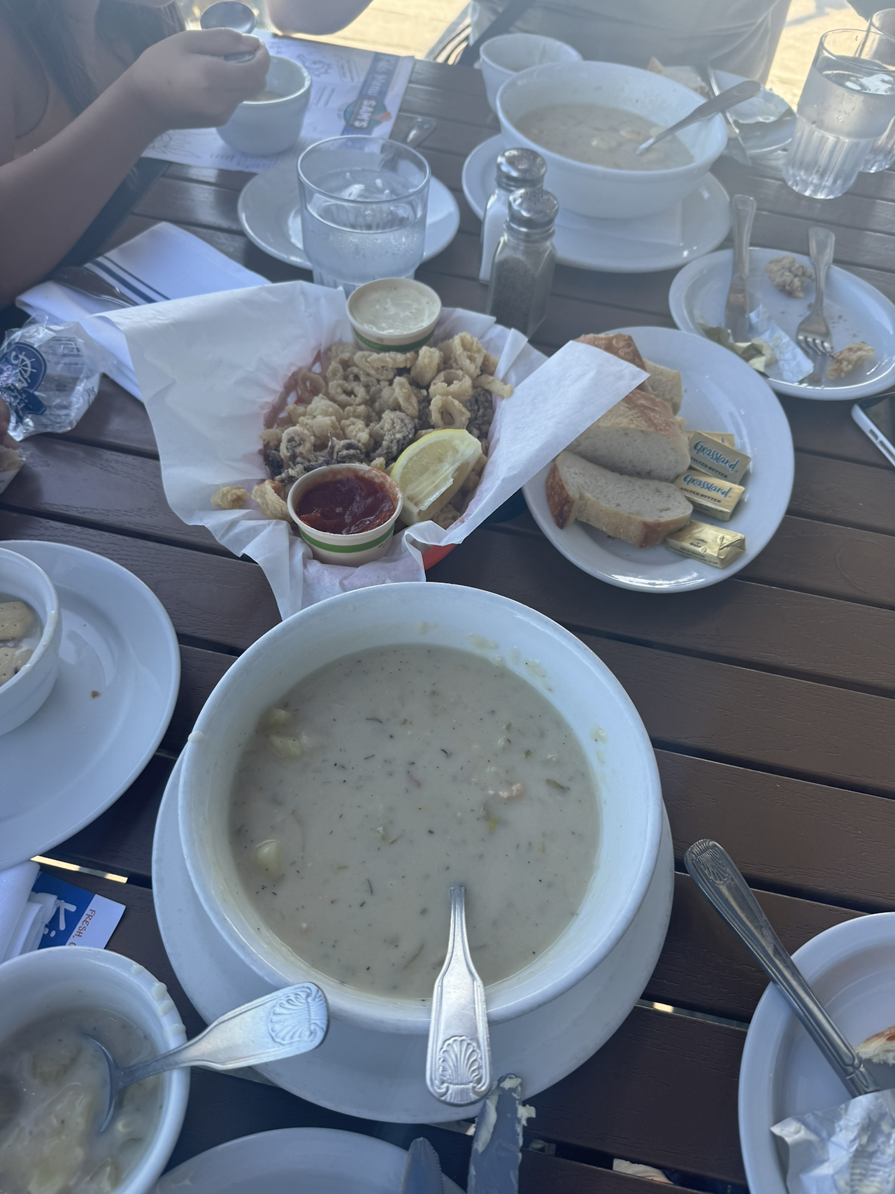날씨는 좋아졌지만 바닷바람 때문에 밖에서 먹기 힘들다. 웬만한 건 다 날려버리므로ㅠㅠ 텐트 안 테이블에서