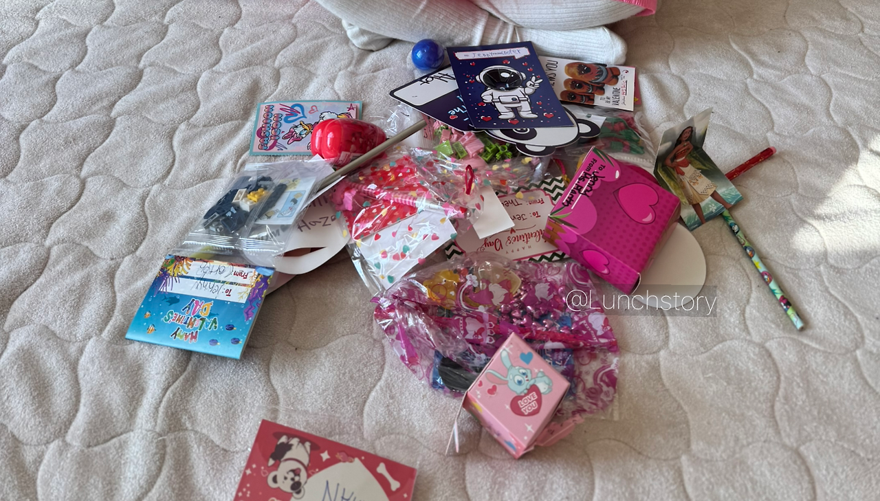 밸런타인데이에서 친구들에게 받아온 예쁘고 작은 쓰레기들.. ㅎㅎㅎ