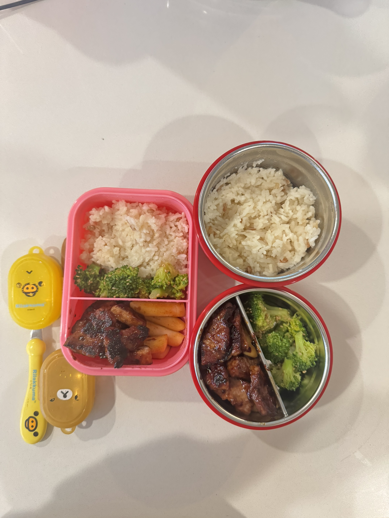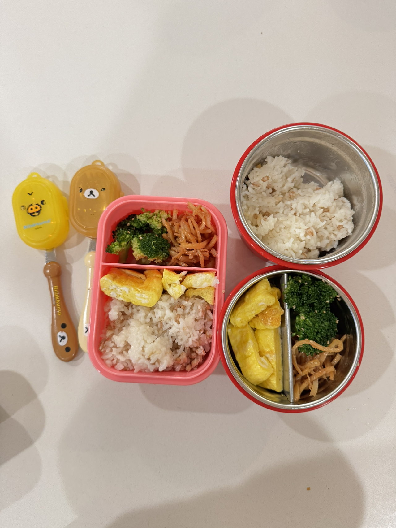 내가 일어나는 동시에 아이들 방문 열어 깨우고, 도시락과 아침을 만드는 동안 스스로 준비하고 나와 식탁에 앉으면 아침식사 시작! 아침과 도시락을 다 만들면 나는 학교 데려다줄 준비를 한다.