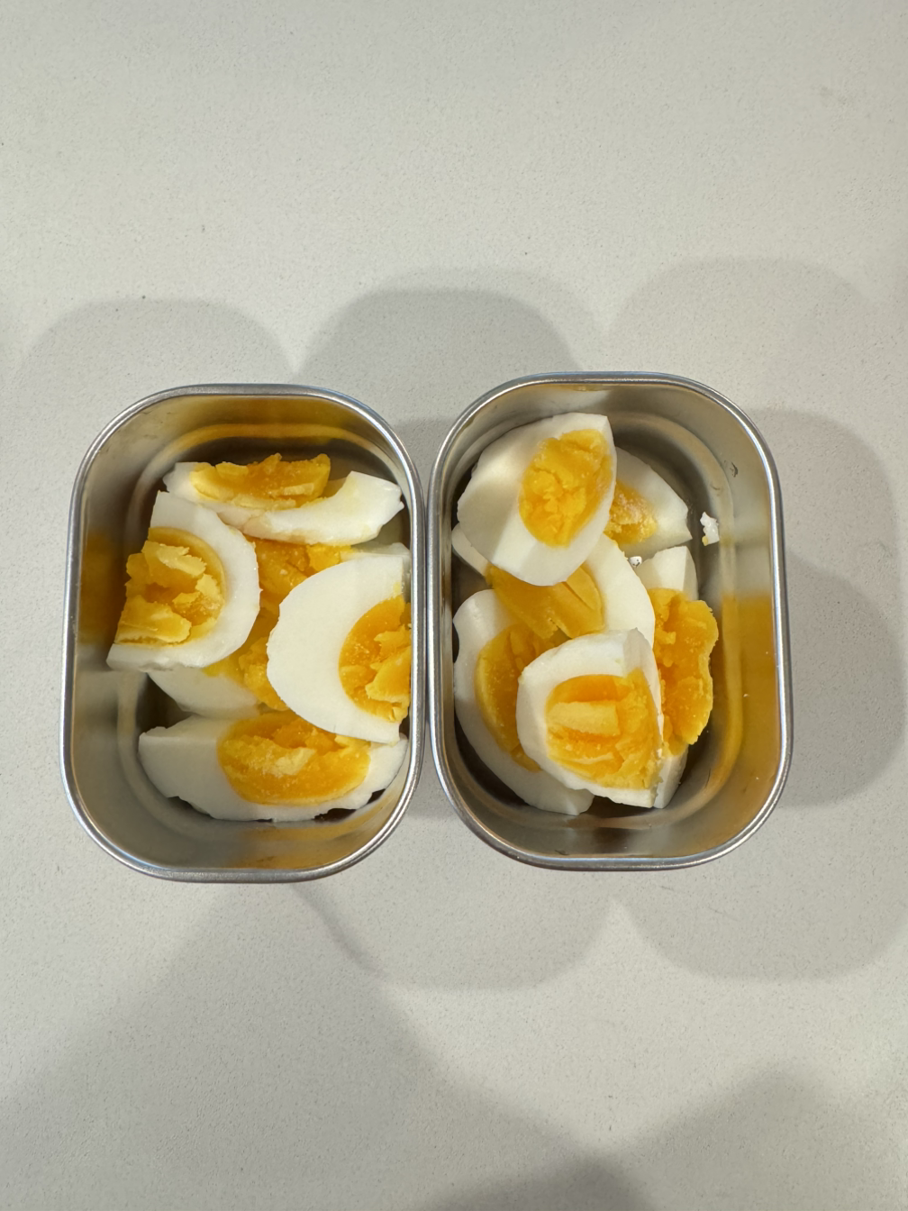 스낵은 삶은 계란 ,, 약간 반숙으로 삶고 Sea Salt 뿌려주면 최고!