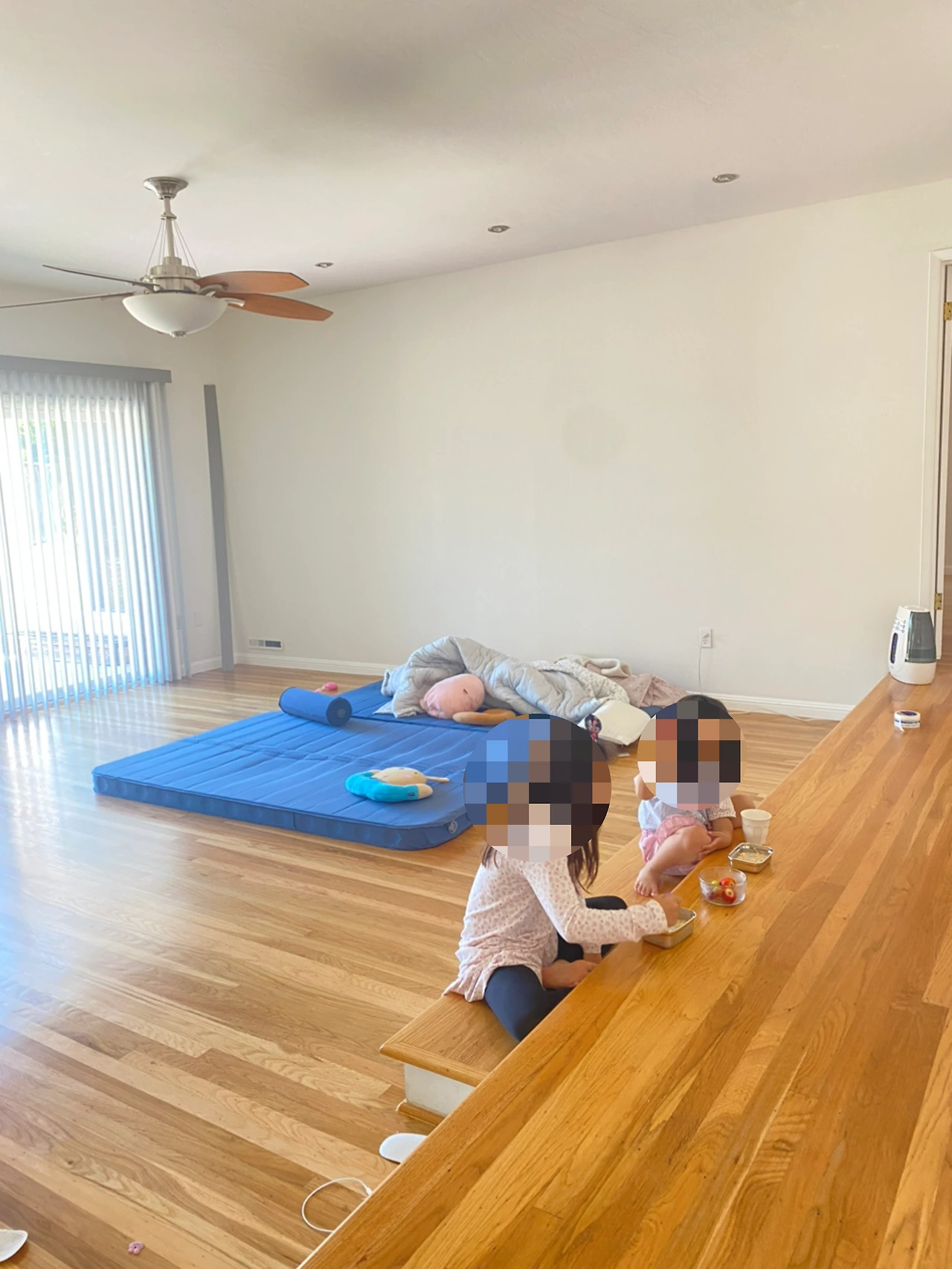 우리 가족은 함께 미국으로 넘어와 호텔에서 하루 묵고 집으로 들어왔다. 당분간 이삿짐이 오기 전까지는 아무것도 없는 집에서 살아야 했다. 다행히도 동료분이 캠핑침대를 빌려주셔서 편하게 잘 수 있었다. 한국에서도 짐을 보내고 두 달을 빈집에서 매트리스 하나만 깔고 살았는데 여기서도 당분간 이 신세.. 새로운 경험이다.