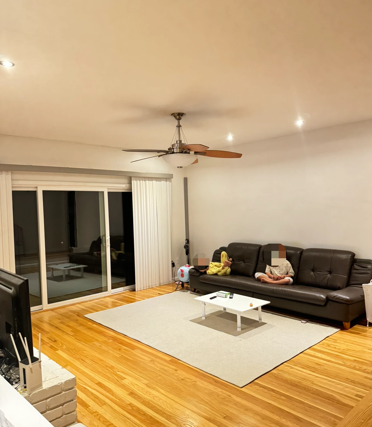 1970년대 지어진 싱글 하우스에 아이들이 다닐 초등학교, 쇼핑몰이 도보로 가능하다. 카펫바닥은 비선호했었는데, 다행히 마룻바닥에 천장에 등도 달려있다(대분의 미국집에는 천장에 등이 없어서 스탠드를 따로 이용해야 함). 또 잔디 관리를 안 해도 된다. 잔디에 물을 주고 관리하는 물값이 한 달에 몇백 불이 드는데 그걸 절약할 수 있는 장점이 있다. 단 물을 주지 않아 잔디가 말라서 노란 것이 단점. 하지만 비가 오는 겨울에는 잔디가 초록색으로 살아난다. 또 2주에 한번 가드너 아저씨가 오셔서 잔디관리 및 마당 청소(?)를 해주신다.