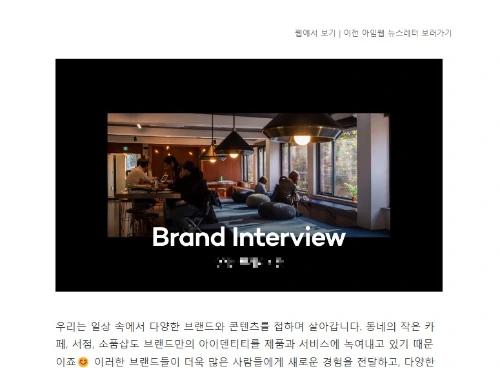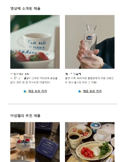 하지만, 이번에 새로운 포맷의 뉴스레터 내용에는 아임웹은 만나볼 수 없었으며 오히려 소개된 타 브랜드의 소개 영상과 짧은 글, 소개된 제품만이 있었다.