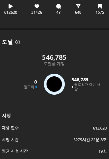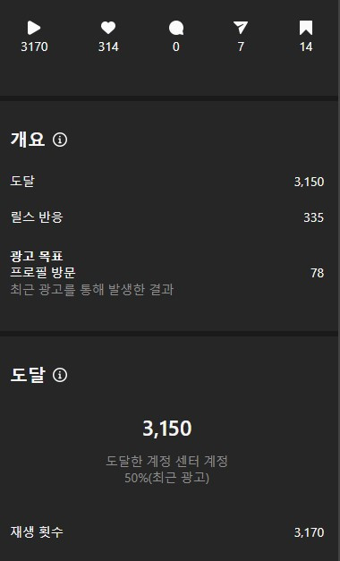 PS. 광고를 돌리지 않은 콘텐츠는 업로드 한지 2주가 지났는데 반응이 계속 온다. 이대로 조회수 100만 명 찍었으면 좋겠어요.