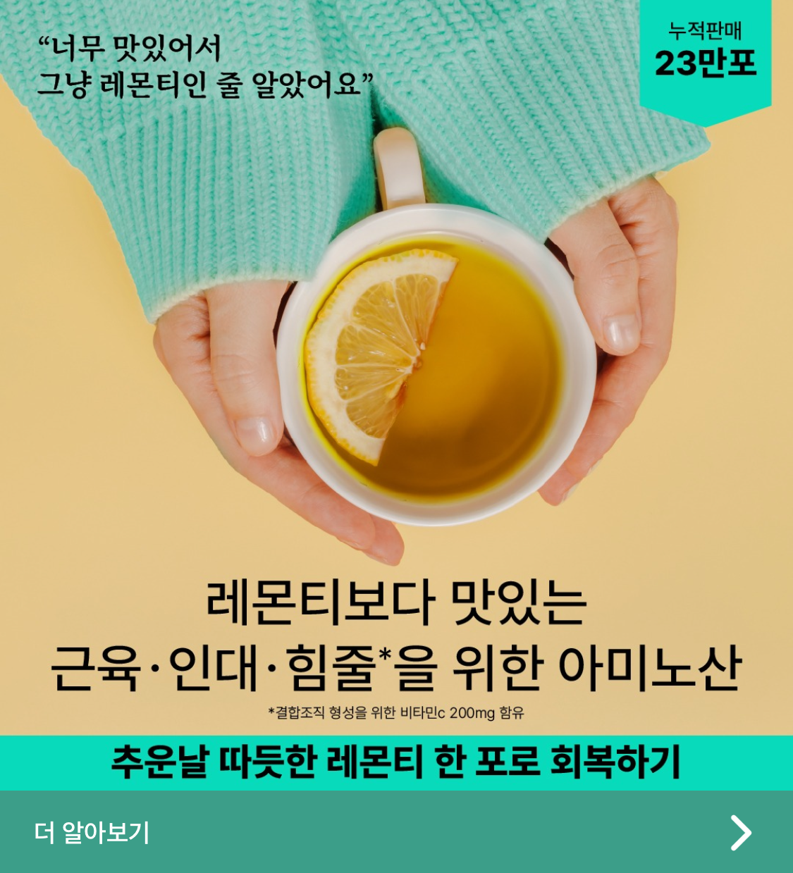 왼쪽 상단을 보면 "레몬티인 줄 알았어요"의 문구로 시작합니다. 하지만 메인 카피가 위치한 중간에는 "레몬티 보다 맛있는"으로 문장이 시작합니다. 제가 이 광고를 접했을 때는 이 두 개 카피에서 괴리감이 느껴졌습니다.