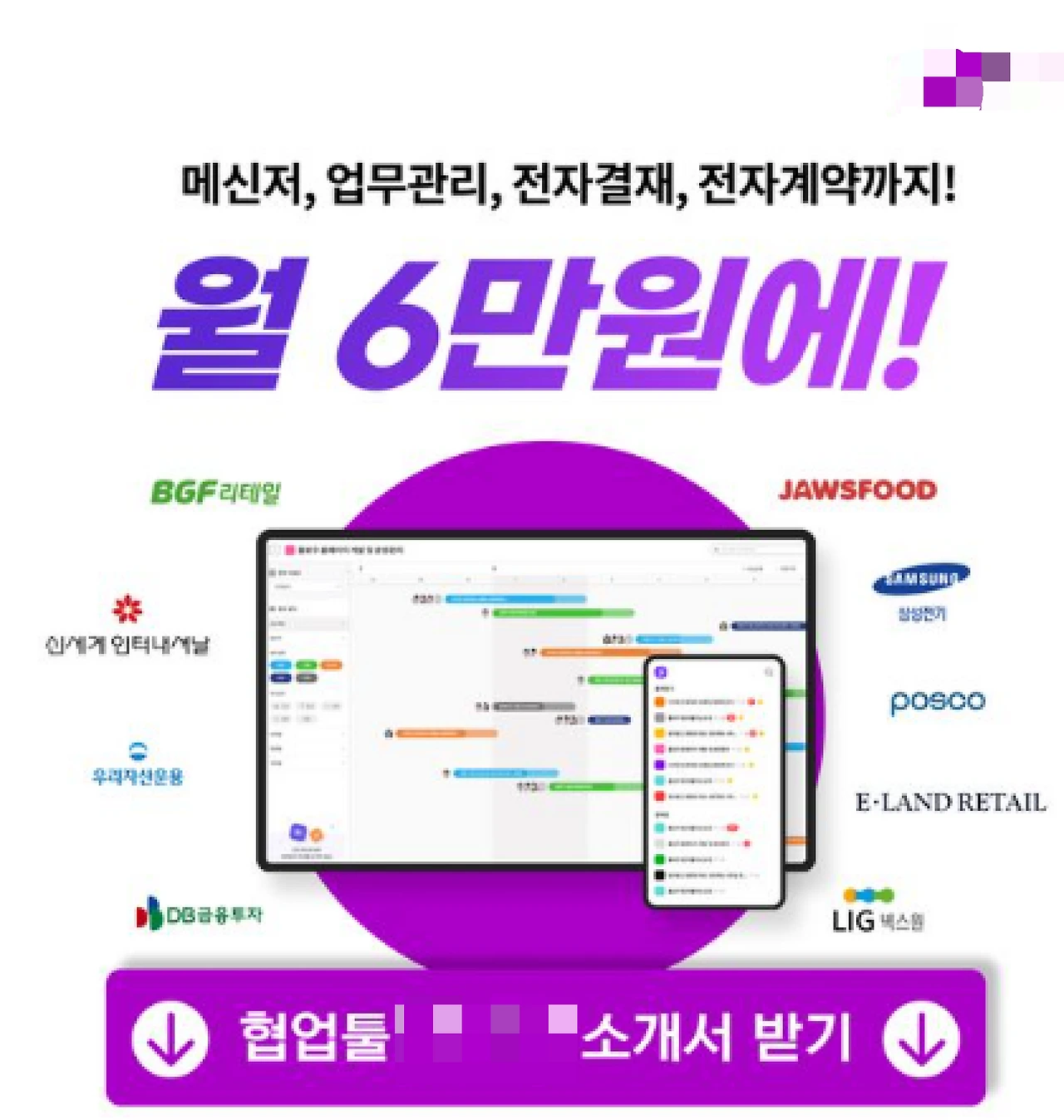 더불어 다양한 곳에서 사용하고 있다는 의미로 협력사의 로고를 삽입해서 신뢰도를 높였습니다. 또한 고객을 유입시키기 위해 '소개서를 받기' CTA버튼을 사용하여 고객의 행동을 유도했습니다.