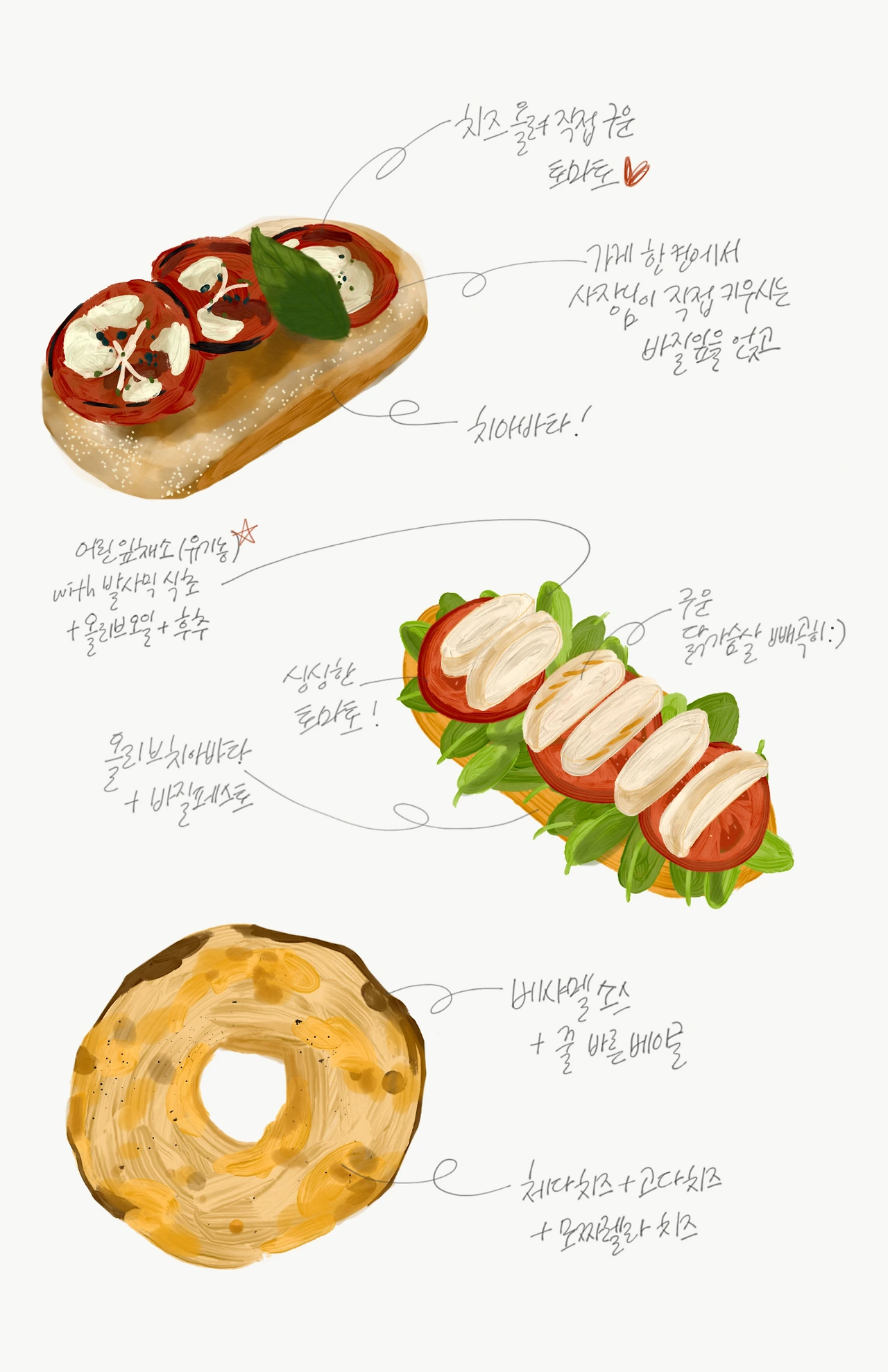 얼마 전 딱 이 조언에 들어맞는 경험을 한 적이 있다. 지인의 결혼식에 갔다가 집 앞 정류장에 내리니 오후 4시쯤 됐다. 그냥 들어가기도 뭐한데 마침 당이 떨어져서 헛헛한 마음에 새로 생긴 동네 빵집에 들어갔다. '왜 이런 곳에 빵집을 내셨을까 유동인구도 적은데, 그래서 빵도 적게 만드신 건가?' 하며 몇 가지를 골라 접시에 담았다. 그중 하나가 치즈 베이글이었다. ‘스타벅스’에서 먹던 치즈 베이글을 떠올리며 반 정도 먹고 저녁 먹고 이따 또 먹어야겠다고 생각했는데 그럴 수가 없었다. 먹자마자 '아니 이게 웬 꿀맛이여!' 하며 결국 집에 도착하기도 전에 하나를 다 먹었다.