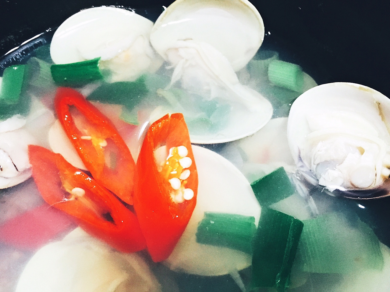 준비물: 해감된 백합 (1인분 9개), 홍고추 1개, 청양고추 1개, 대파 1개, 소금, 다진 마늘(생략 가능)