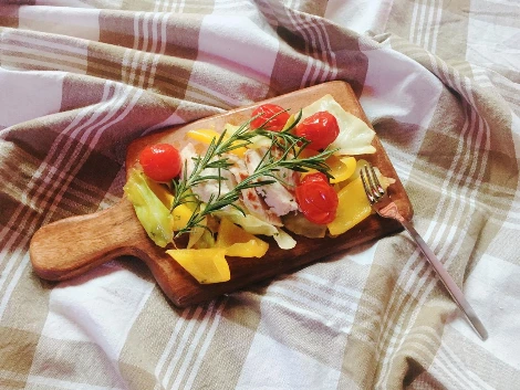파프리카, 방울토마토, 양배추 등 기호에 맞는 야채에 살짝 간을 한 후 볶거나 굽는다.