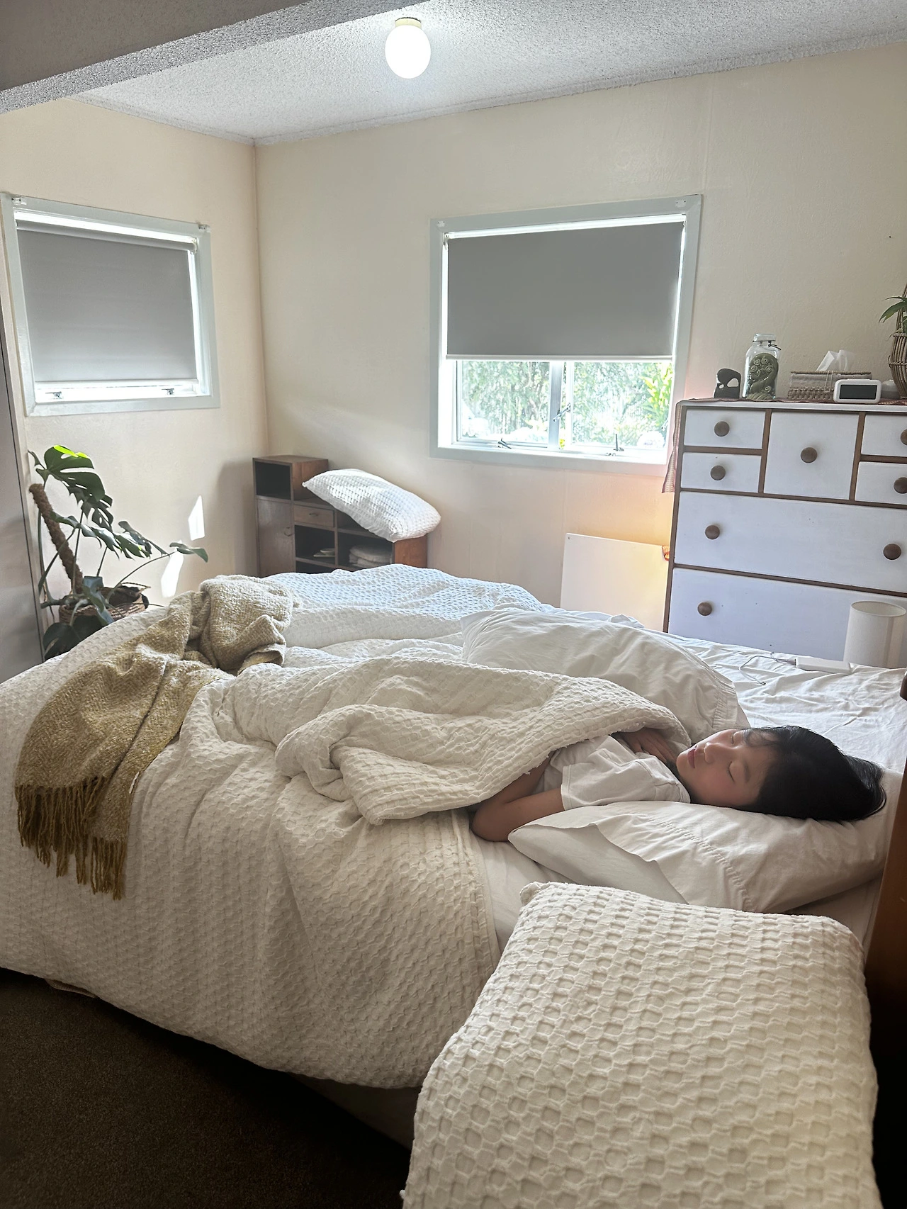 물청소를 하고 제대로 닦지 않은 듯했다. 아이에게 손을 뻗으며 “조심해, 미끄러워”라고 말하는 순간 아이가 넘어져 쿵 하고 세게 엉덩방아를 찧었다.