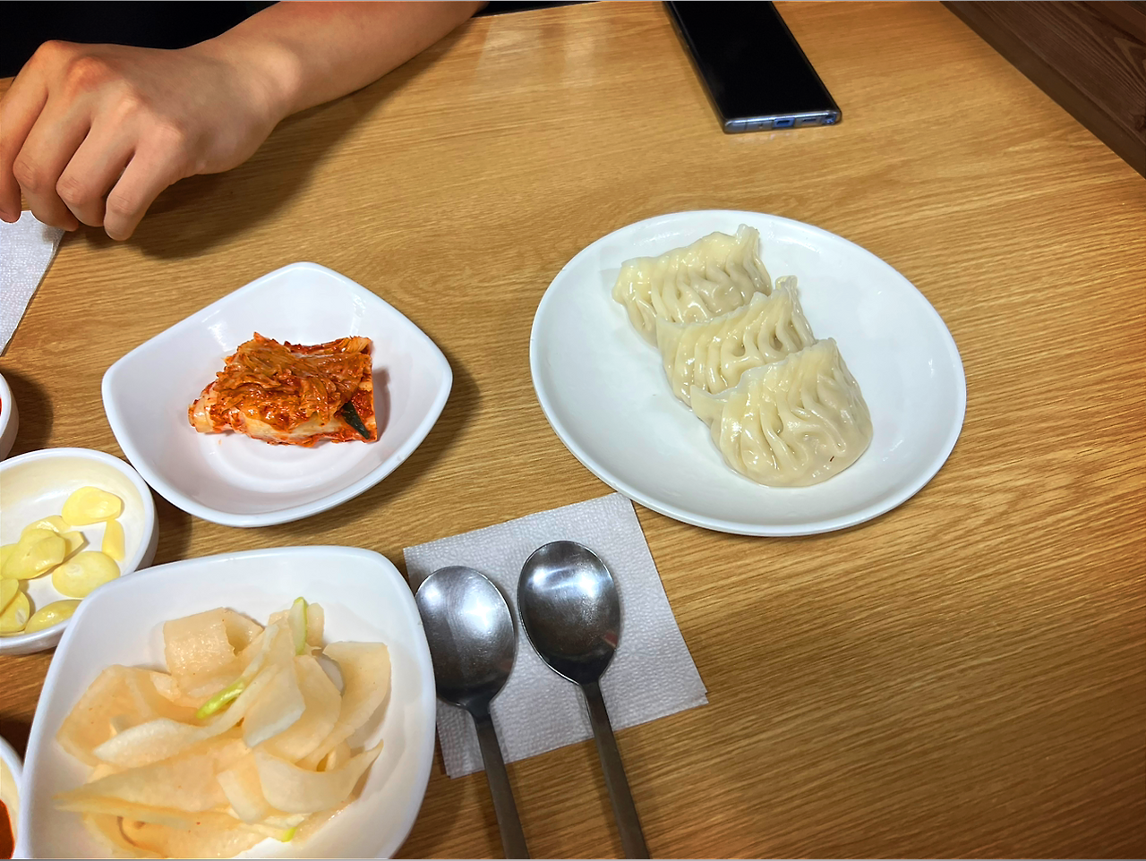 만두..! 오우 근데 이북식 만두라 슴슴할 줄 알았는데 고기 가득한 만두소에 간이 짭짤하게 베어 정말 맛있다. 한입 베어 물면 육즙이 주르륵하고 흐르는 게 다음에 오면 반판말고 한판 시켜서 먹고 싶었다.