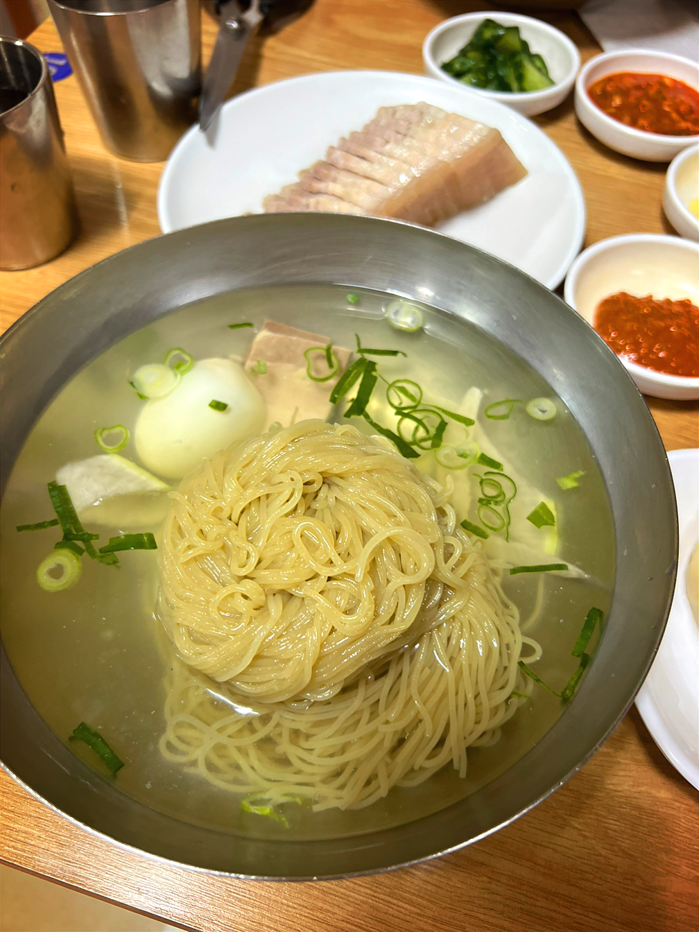 음식에 대한 이해도가 낮은 탓인지, 자극적인 냉면의 맛에 익숙해진 것인지는 모르겠지만 평양냉면 참 어려운 음식이야… 나에게 아직은 찰기 가득하고 시원한 함흥냉면이 내 스타일이다.