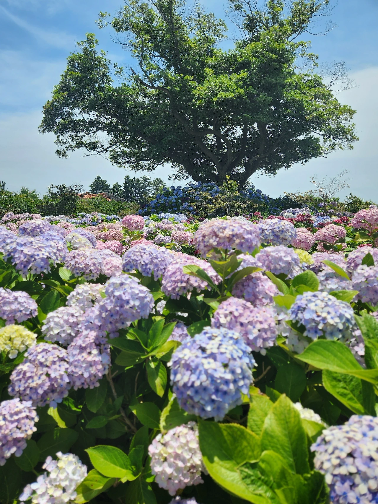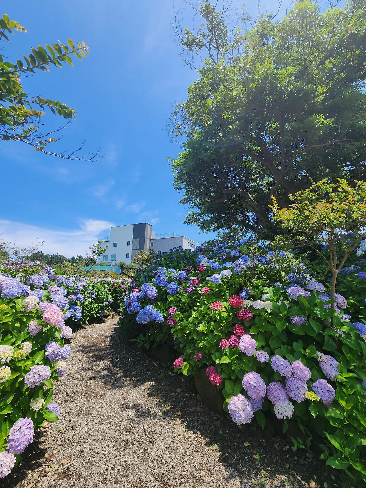6월에 방문한 현애원에는 알록달록 수국이 만개한 상태였다. 가운데에 큰 나무가 하나 서있는 모습이 무언가 지브리 만화영화의 한 장면을 연상케 했다. 평일에 방문하여 사람이 별로 없어 온 수국을 온전히 만끽할 수 있었다. 그러다 드론 장비까지 사용하여 촬영을 하고 있는, 인플루언서로 추정되는 외국인 한 분을 만나게 되었다. 예쁘면서도 독특한 원피스를 입고 있는 옷차림이었고, 내가 다가가서 사진을 하나 찍어달라고 부탁하자 흔쾌히 수락하였다. 처음에 나의 "Picture"라는 말을, 함께 사진을 찍자는 뜻으로 오해하는 것을 보면서 외국의 유명한 인플루언서가 분명하다는 생각이 들었다. 혼자 여행 중이라 셀카밖에 찍을 수 없어 아쉬운 찰나에 이렇게 정성스럽게 사진을 찍어주시는 분을 만나 감사한 마음이 들었다. 나중에 결과물을 보니 전문가의 손길이 느껴졌으며 사진 구도 등이 무척 만족스러웠다.처음에 같이 찍자는 말로 오해했던 것이 떠올라 이번에는 같이 한 컷 찍자고 제안했더니 그것도 흔쾌히 수락해 주셨다. 처음 보는 사이에 함께 손을 잡고 장난스러운 포즈를 하면서 몇 컷의 사진을 찍었다. 예상치 못한 경험을 한 것이 놀랍기도 하면서 뿌듯했다. 후에 친구들에게 그날 있었던 에피소드를 이야기하니 다들 내가 처음 본 사람과 손을 잡고 사진을 찍은 것에 대해 놀라워하며 나의 친화력을 칭찬했다. 최근에 혼자 여행을 몇 번 다니기 시작하면서 나의 새로운 모습들을 추가적으로 알아가고있다.