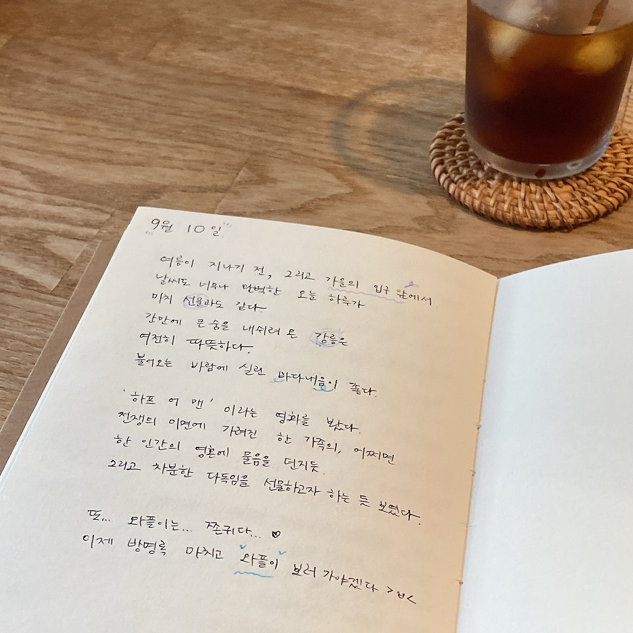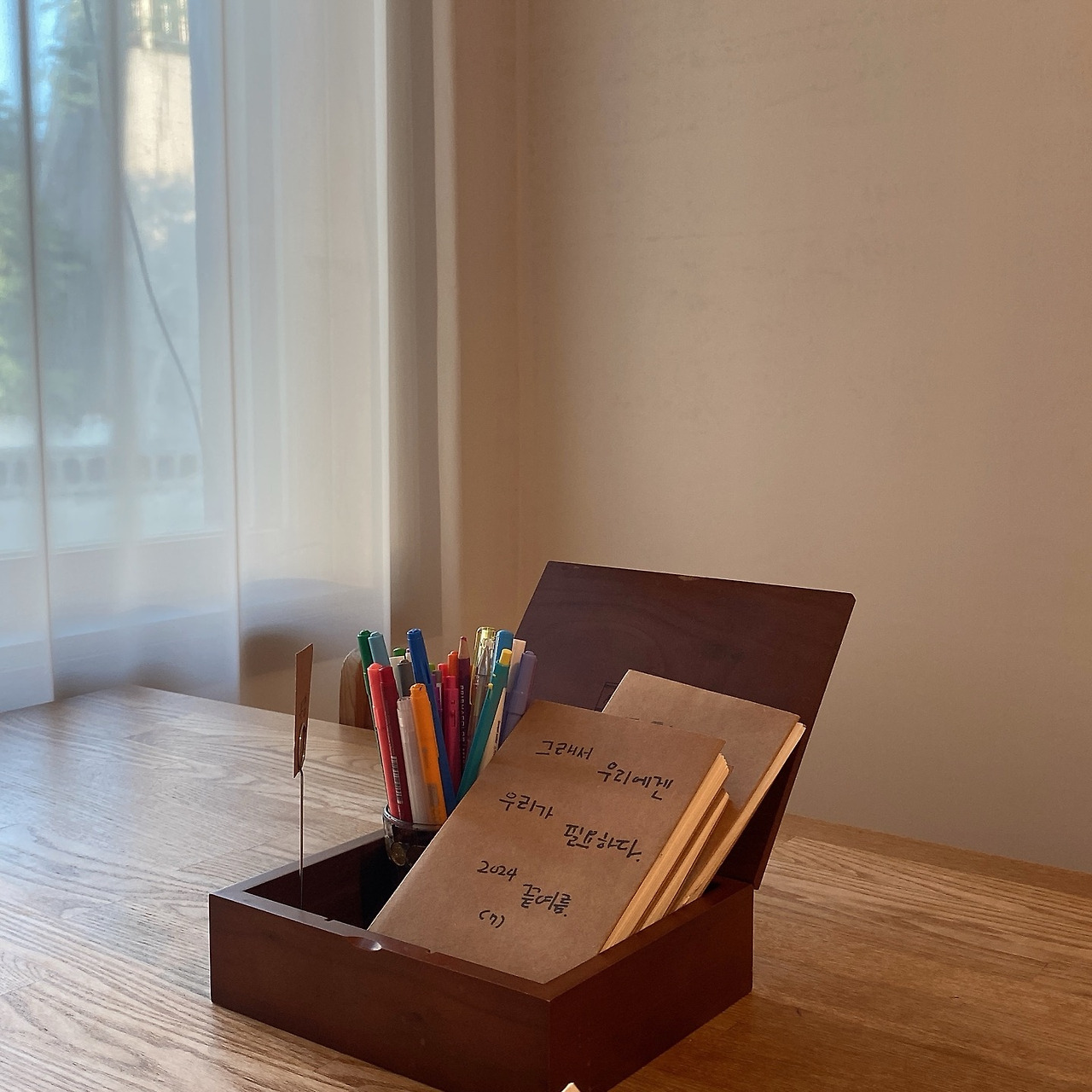 테이블 중앙에는 방명록과 필기구들이 놓여 있다. 방명록(7)을 집어 들고 오늘 나의 방문을 남겨본다. 펜들도 색깔별로 다양해서 꾸미기에도 좋았다. 꽤 많은 사람들이 방명록에 진심으로 남겨둔 글을 보며 괜스레 마음이 따뜻해졌다.