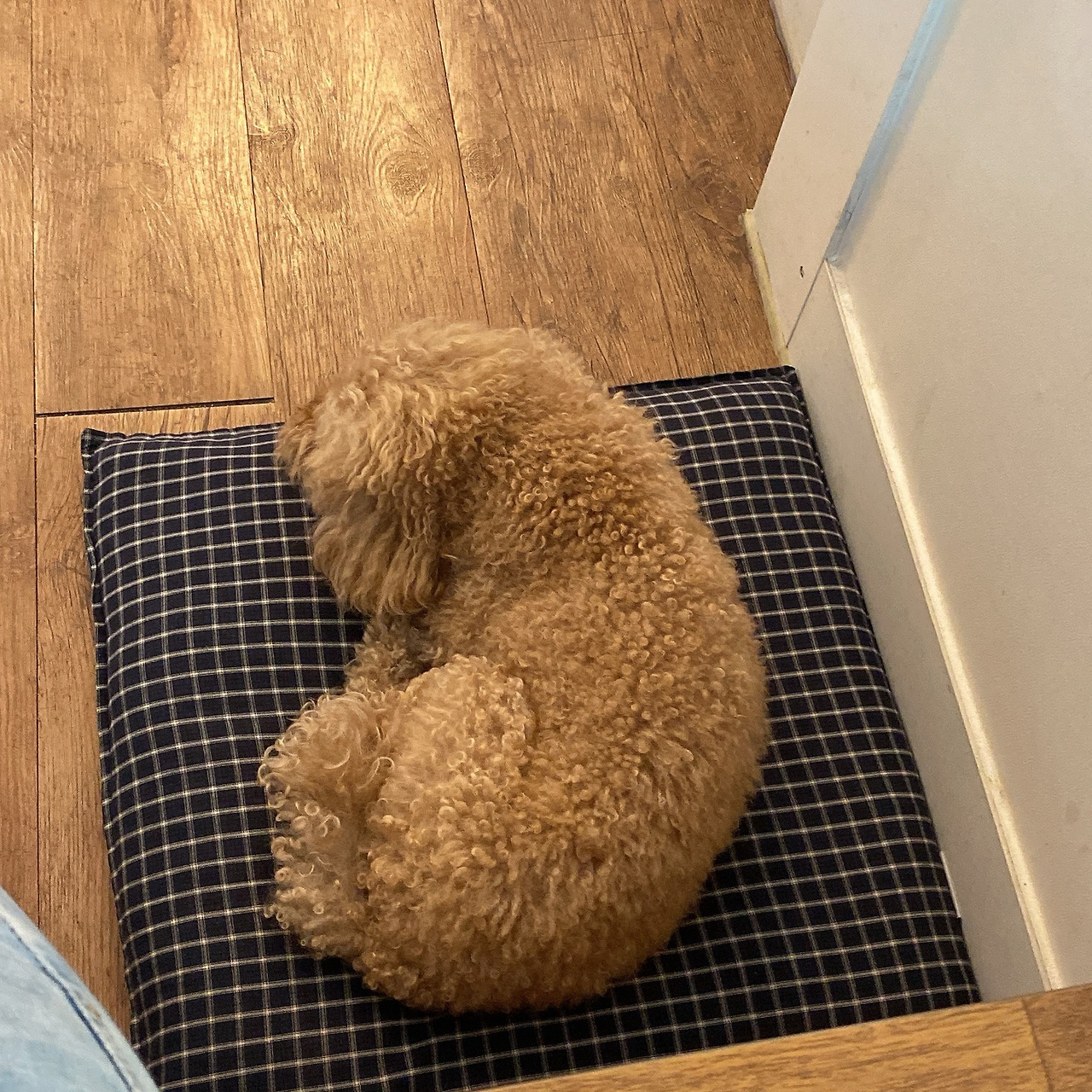 현관을 열면 이중문이 하나 더 있는데, 이중문의 반투명한 창 뒤로 '와플이'의 모습이 비친다. 사람을 좋아하는 성격 좋은 푸들 '와플이'가 마중 나와 두 발로 나를 반겨주었다. 너무 귀여워서 소리 지를 뻔했지만 와플이가 놀랄 것 같아서 꾹 삼켰다.