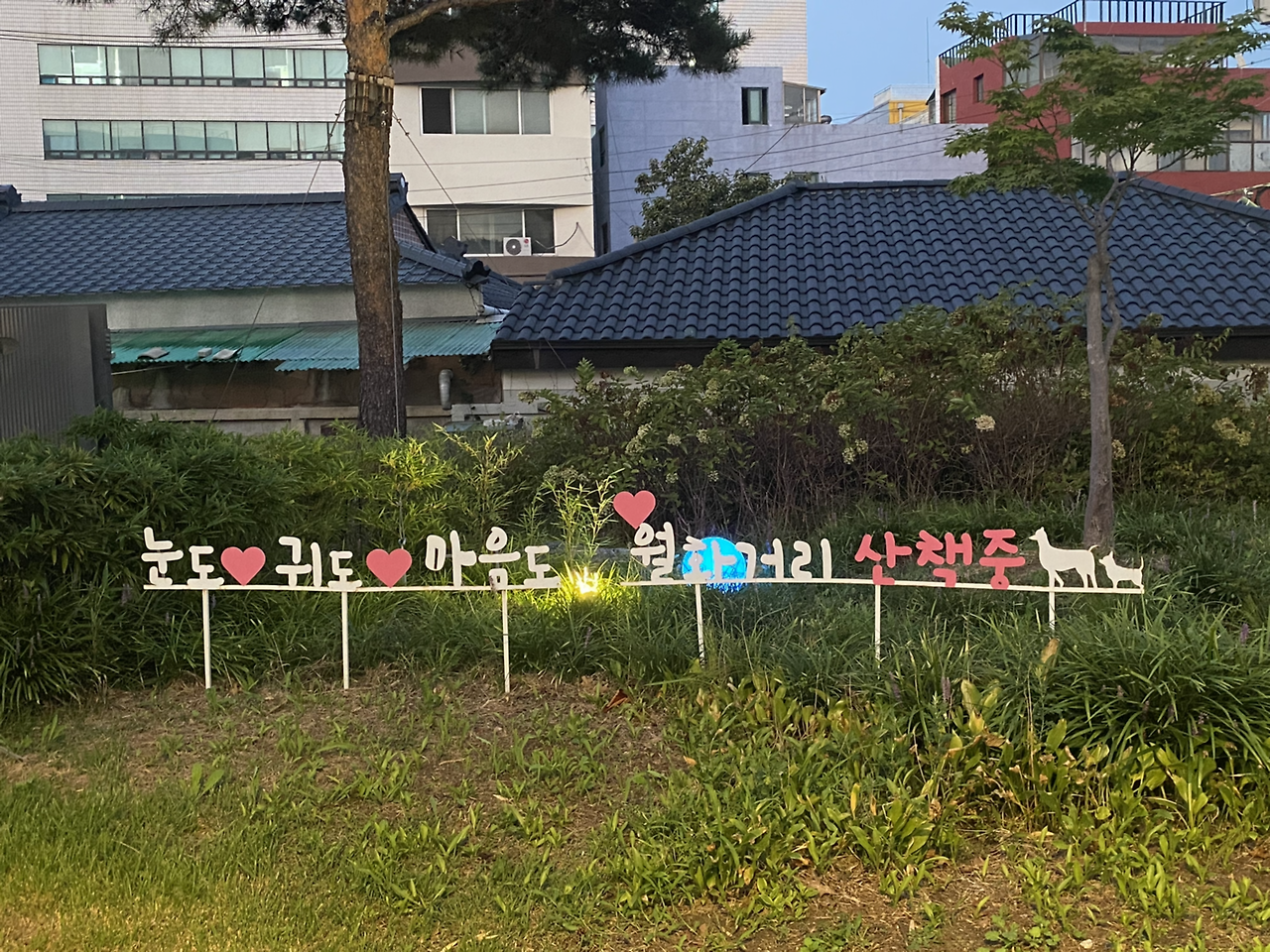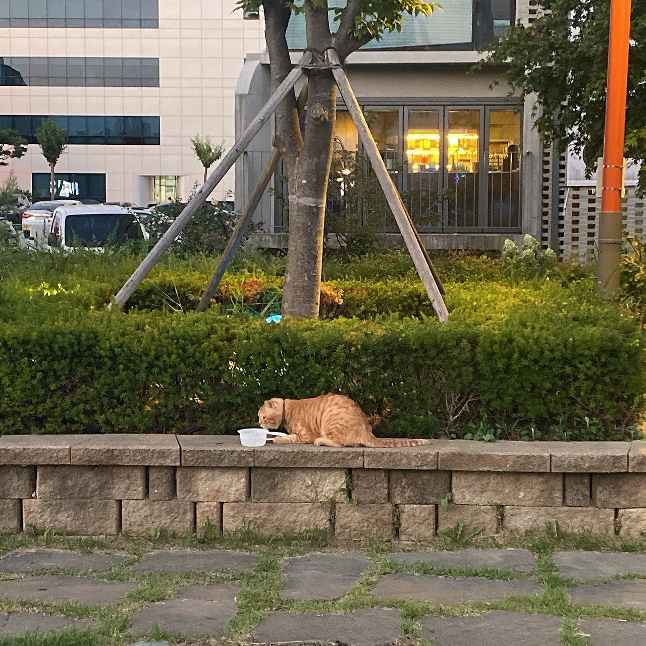 내 앞으로 외국인 커플 혹은 부부 한쌍이 걸어가고 있었다. 백팩을 메고 다정하게 이야기하는 그들의 모습에서 ’사랑한다‘는 단어가 피어오르는 것이 보였다. 그 옆으로 목줄로 보이는 끈을 한 고양이가 벤치 위에서 누군가가 차려놓은 밥을 먹고 있었다. 그 앞의 어떤 아주머니께서 챙겨주신 듯 보였다. 반려묘의 생인지 거리의 묘생인지는 정확히 알 수는 없었으나, 지금 이 순간 배를 곯지 않게 하려는 따뜻한 의도가 느껴졌다.