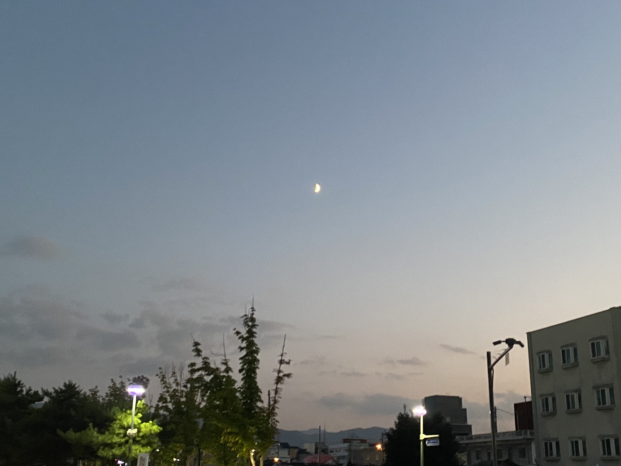 조금 더 움직이니 손톱 같은 달이 떠올랐다.
