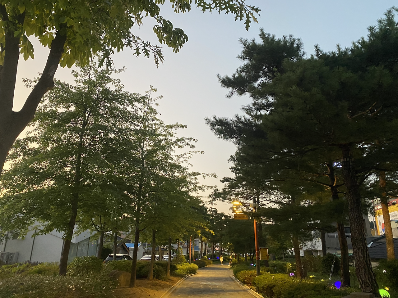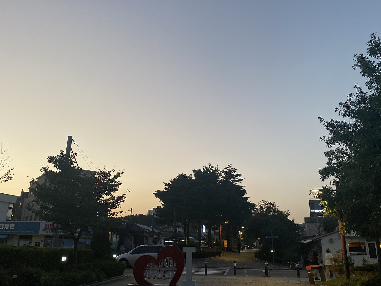 사진을 찍고 나와서 월화거리를 따라 쭉 걸었다. 해질녂의 하늘은 물감을 풀어둔 듯 섞여 있었다. 화요일 저녁의 월화거리는 생각보다 더 한산했다. 잔잔한 거리를 유유히 걸었다. 속으로만 부르던 콧노래가 바깥으로 조금씩 새어 나온다. 그래도 아무도 모를 거다! : )