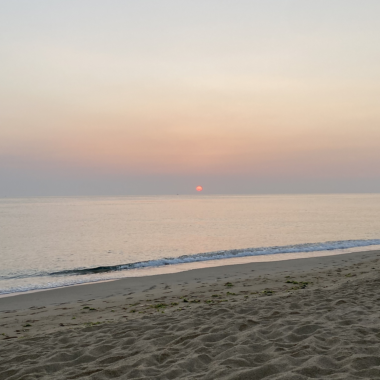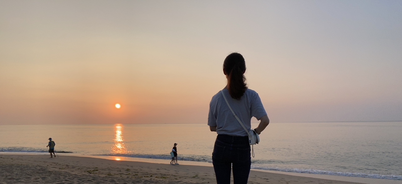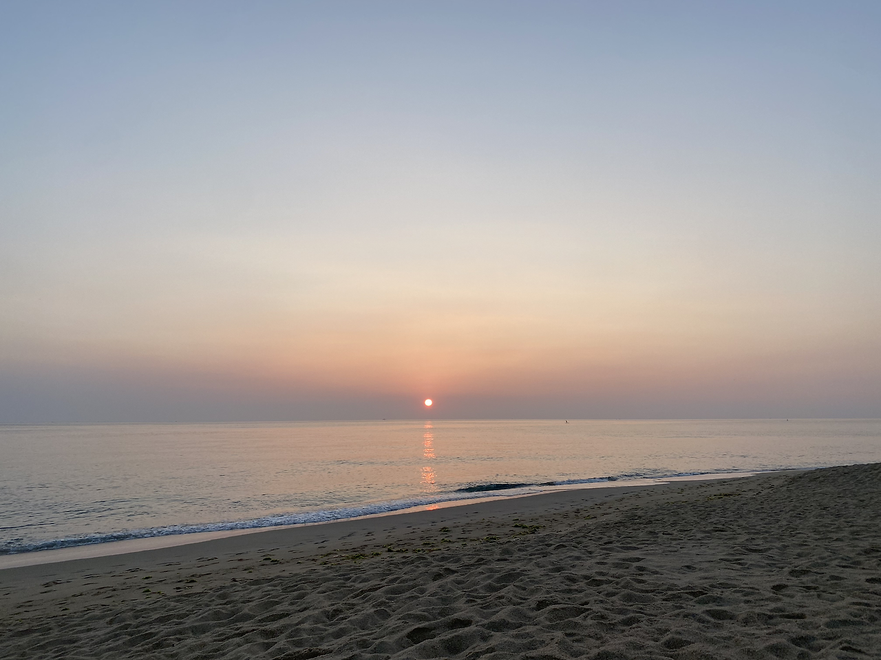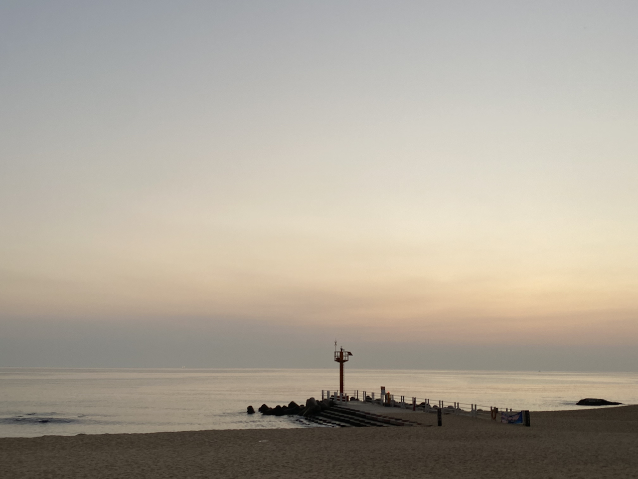 일출시간에 맞춰 자발적으로 일출을 보는 것이 처음이었다. 도착해서 마주한 하늘은 연한 잿빛과 적빛 그 사이에 걸쳐 있었다. 낮 시간보다 바람은 잔잔했고 파도소리가 더 부드러웠다. 아직 보이지 않는 태양의 모습에 ‘오늘 날씨가 흐린 건가?’, ‘혹시 해가 벌써 다 떠서 안 보이는 건가?’ 하는 불안한 마음에 다시 일출 예정 시각을 확인했다.