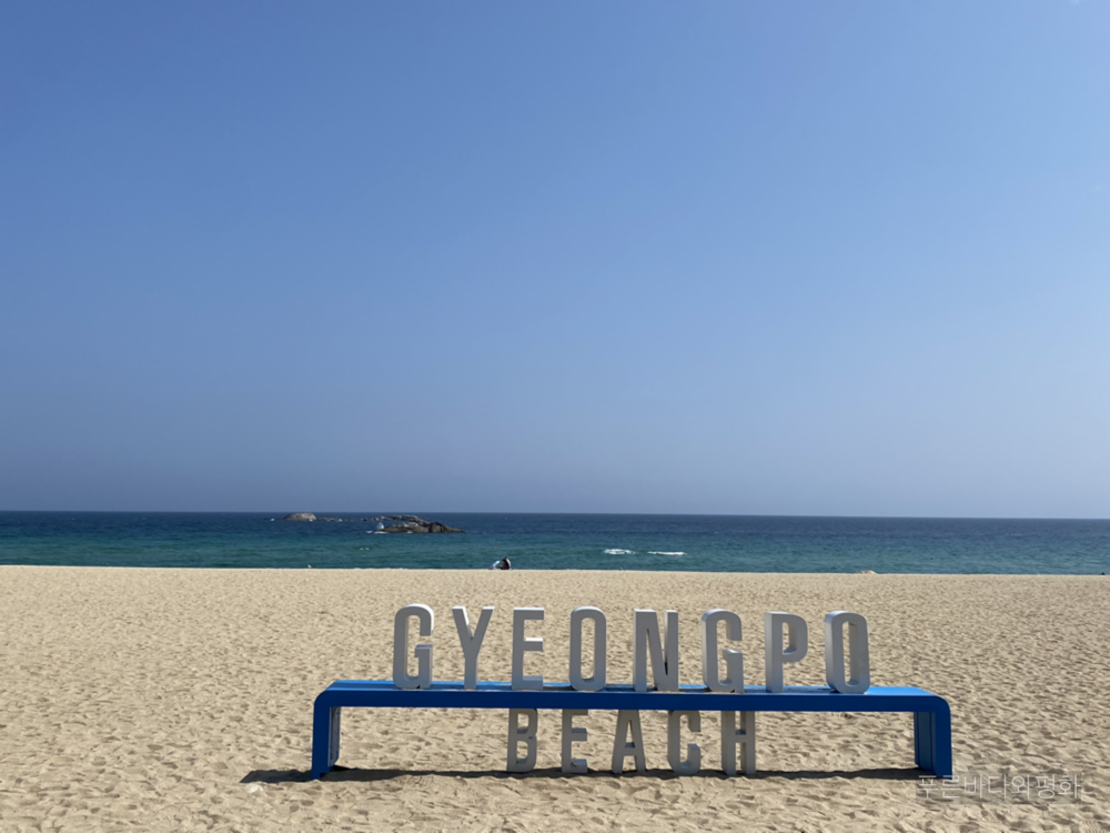 오전 10시 20분 경의 경포해변은 잔잔했다. 그리고 이미 폐장한 해수욕장이기도 하고 평일이라 사람이 많지 않았다. 경포해변은 안목해변보다도 좀 더 부드러운 느낌이다. 바다의 색감은 안목과 강문해변의 중간 색감이지만 좀 더 온화하다. 해변 입구쪽에 '좋을 땐 좋다고 말해' 라고 쓰여진 포토존 구조물이 보였다. 지금 떠오르는 그 감정을 내뱉어보라고 말을 건네는 것 같았다.