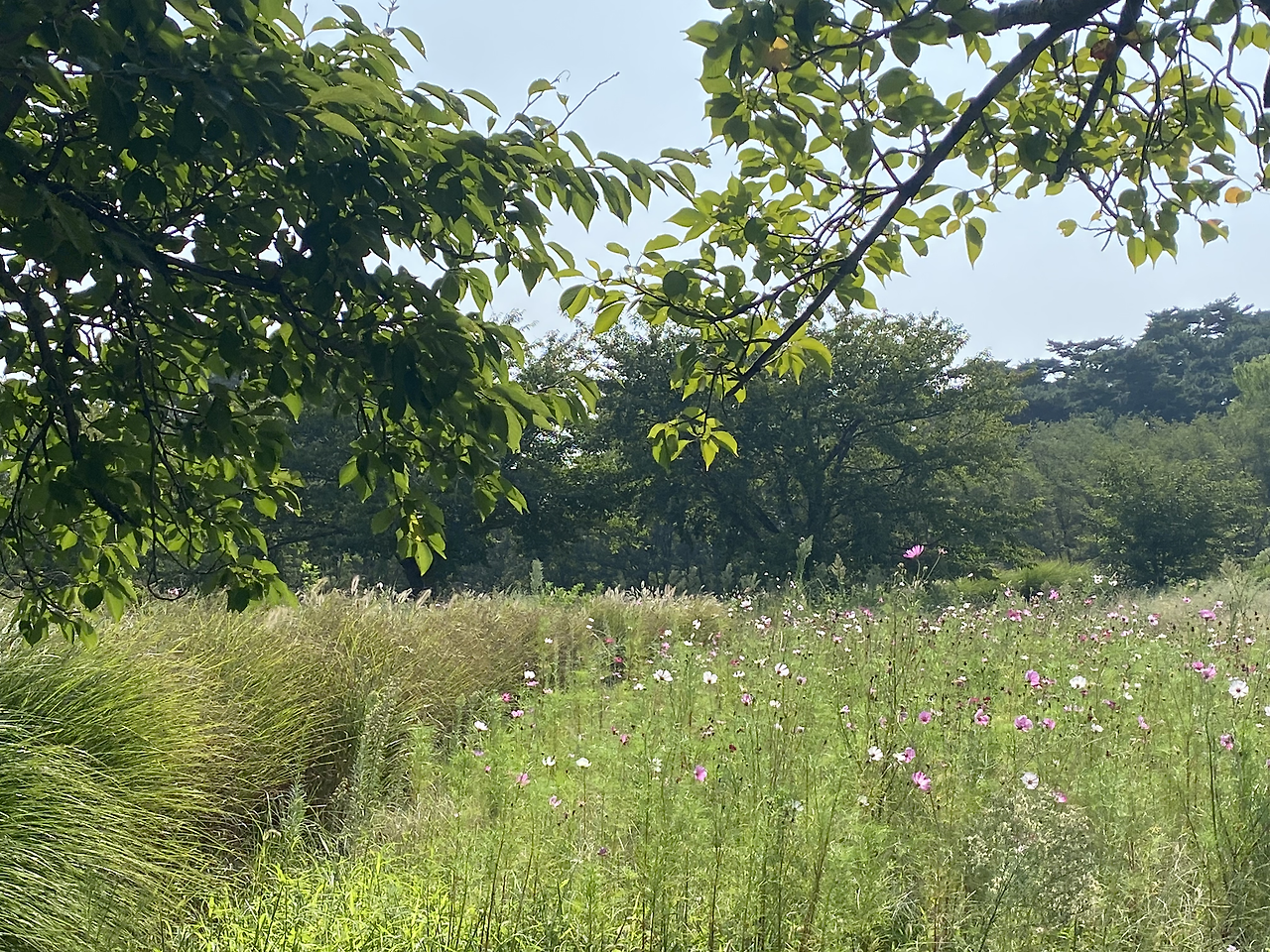 오른쪽으로 고개를 돌려 한참을 호숫가를 바라보며 가다가, 2단으로 기어를 잠깐 두고 살짝 속도를 내어 바람을 느꼈다. 질끈 동여맸던 나의 잔머리는 바람따라 기어코 신명나게 빠져나와 자유를 누리기 시작했다. 잔머리가 내 눈을 계속 간지럽힐 때 잠시 페달을 멈추었다. 멈춘 곳에는 가을을 알리는 코스모스가 잔뜩 피어 있었다.