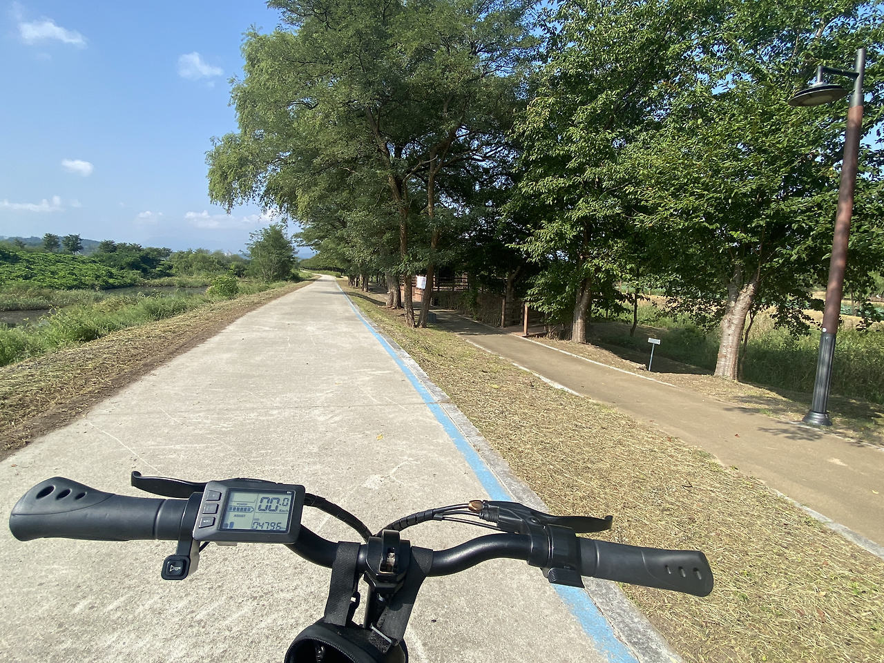 이 길을 따라 직진을 하면 반납시간을 넘길 것 같아서 중간에 왔던 길로 유턴을 했다. 인적이 드문 시간대와 길이었기에 기어를 다시 2단으로 올렸다. 생각보다 속도가 빨라서 쫄보인 나는 금방 1단으로 내렸다.