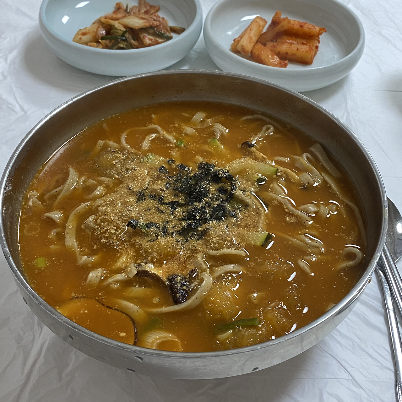 밖을 나서니 비가 내리고 있었다. 숙소에서 얼마 멀지 않은 곳에 ‘정선이모네 콧등치기 국수’라는 식당이 있었다. 오픈 시간에 맞춰가서 그런지 내가 첫 번째 손님이었다. ‘장칼국수’ 한 그릇을 먼저 시켰다. 비 오는 날 뜨끈한 국물이 너무 먹고 싶었다.