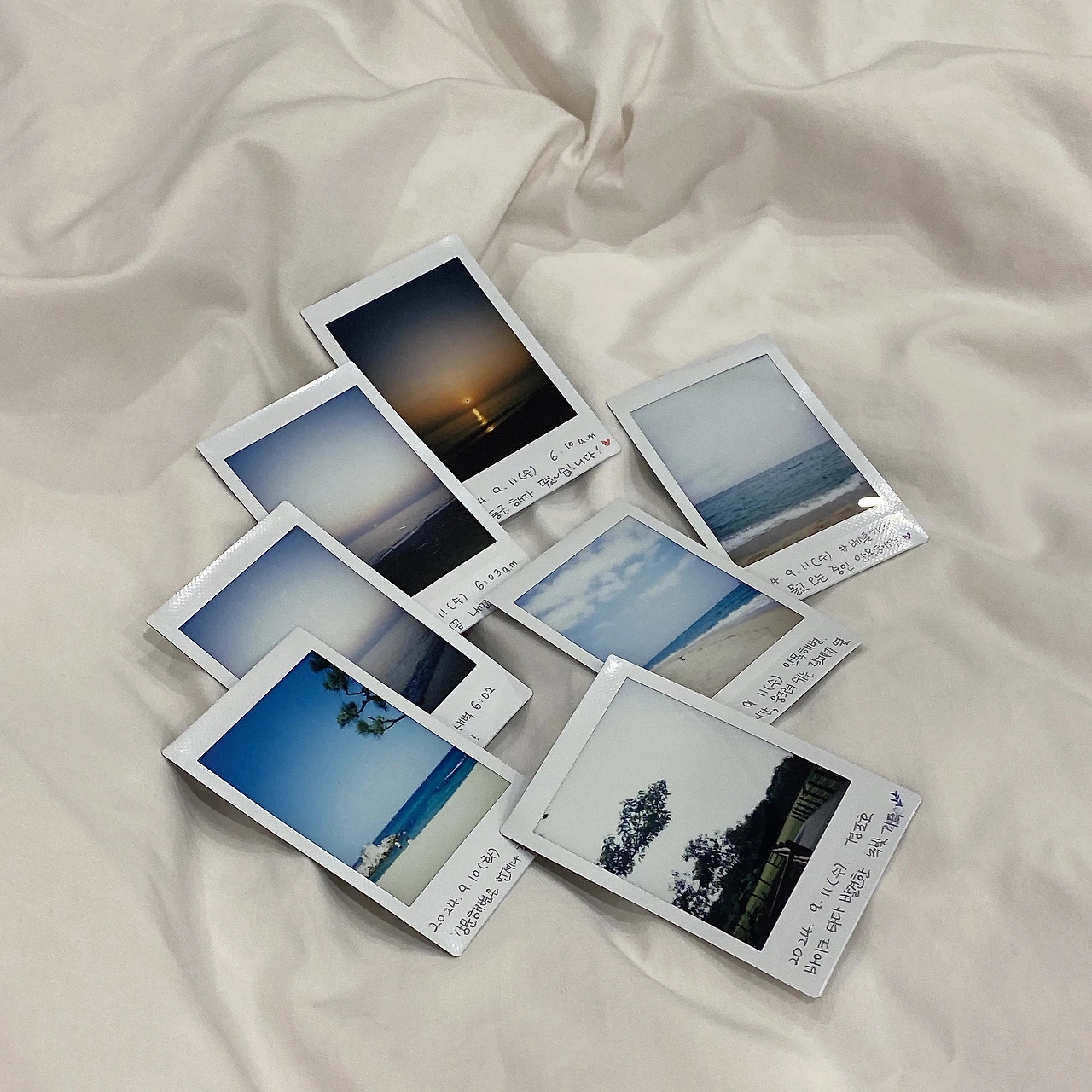 폴라로이드 카메라로 열심히 찍은 사진들도 새하얀 이불 위에 펼쳐 보았다. 같은 날이어도 서로 다른 빛을 담고 있고, 날이 흐리든 맑든 그 고유의 풍경은 이제 다시는 볼 수 없는 소중한 ‘과거’가 되었다.