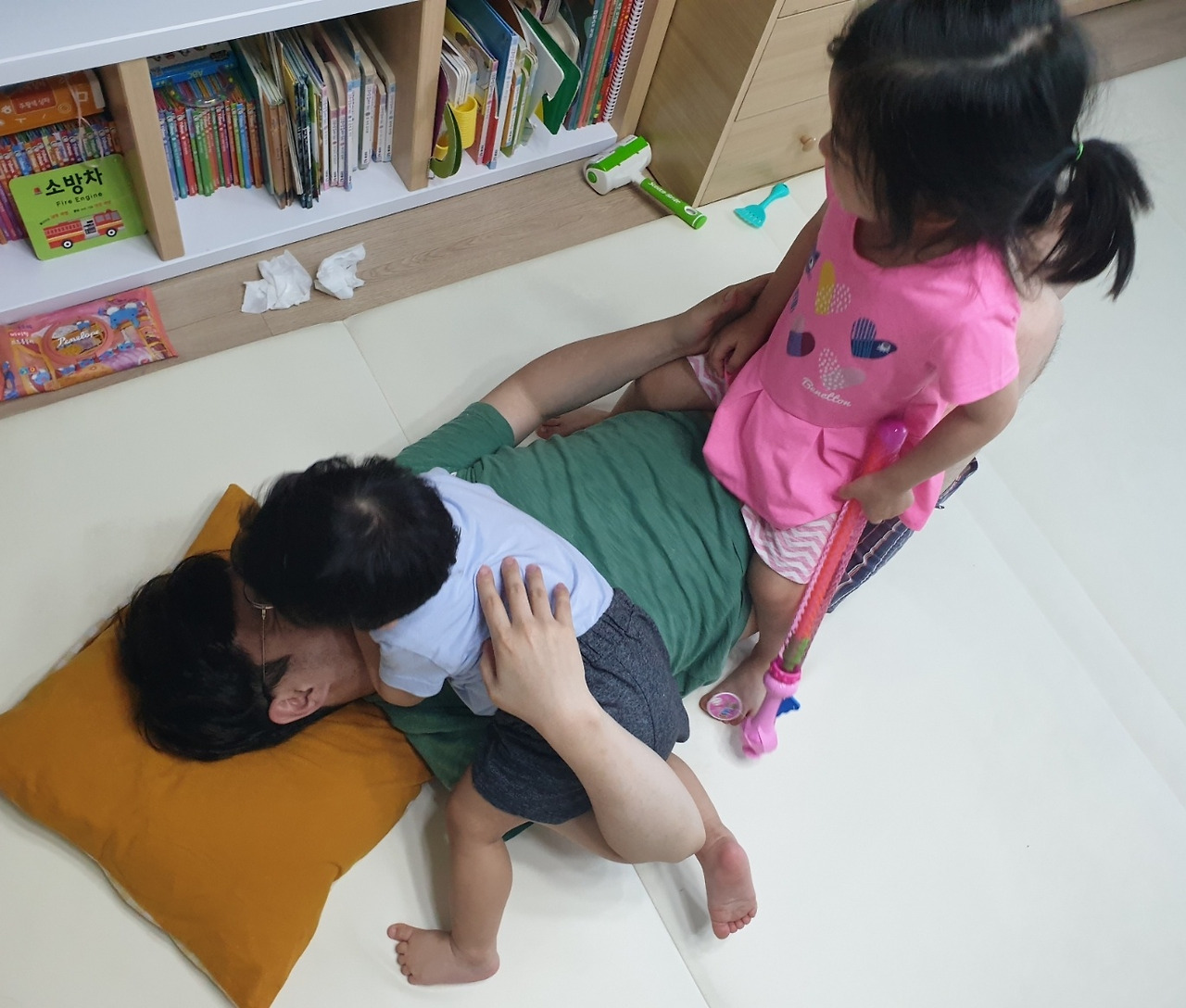 아빠와 침대에서 잠들기 전 노는 게 제일 좋다는 둘째.jpg