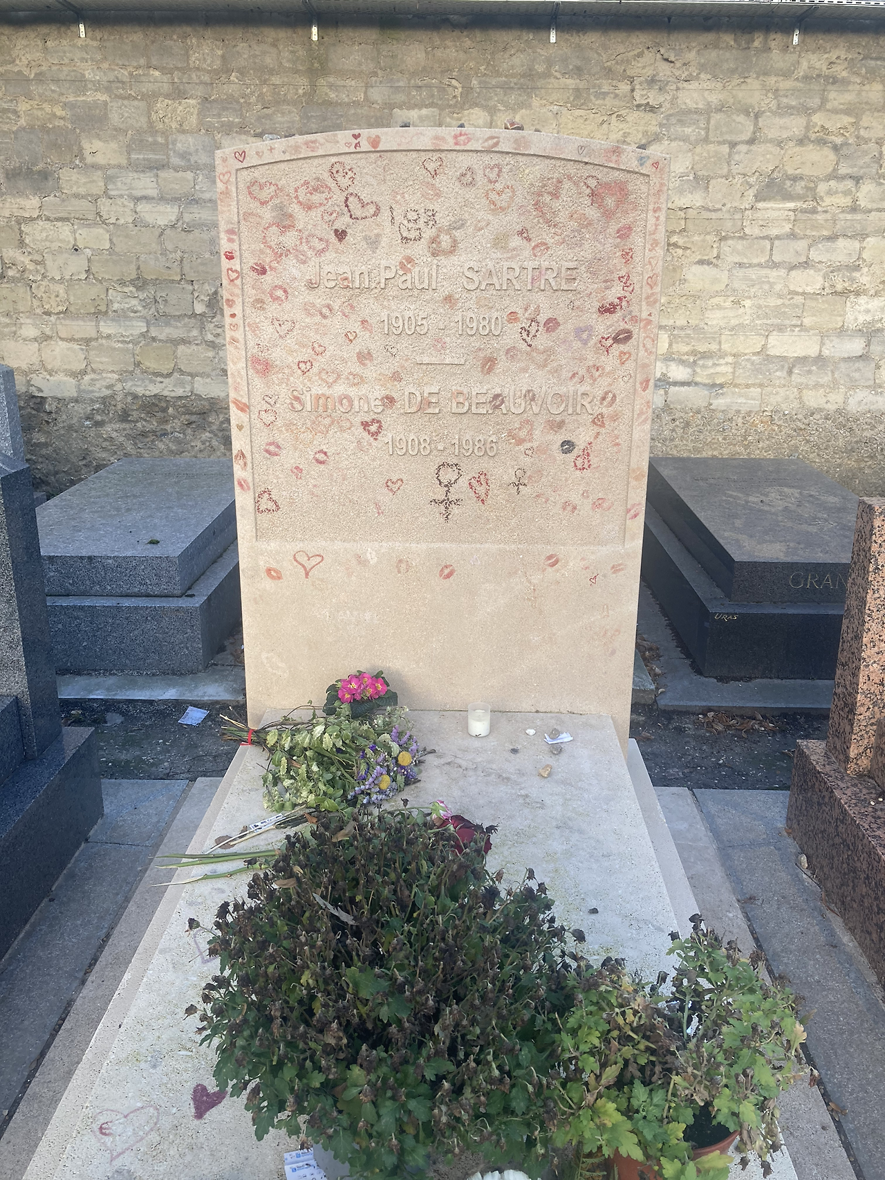 사르트르와 보부아르의 묘지엔 세계 곳곳에서 그들을 찾은 팬들의 키스마크와 메세지로 뒤덮여 있었다.