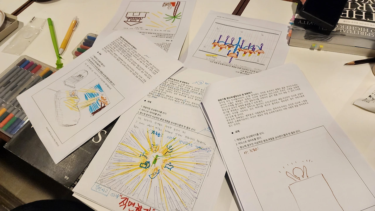 몇 주간을 하루에 4~5시간을 나를 마주하고 내 불편한 모든 감정과 생각을 직면하고 이야기를 토해내는데 썼어요. 불편하고 마주하기 싫은 나를 만나야 해서 정말 많이 괴롭고 힘들었고 정말 많이 울었던 것 같아요. 이해가 되지 않아도 자식이니까 다 이해하고 부모님이 역할을 못 하니 내가 책임져야 된다는 생각을 했지만 내 살기 급급한 스스로를 미워했어요. 그리고 그 작업이 나를 수용하는 방법을 깨닫게 도와주었죠.