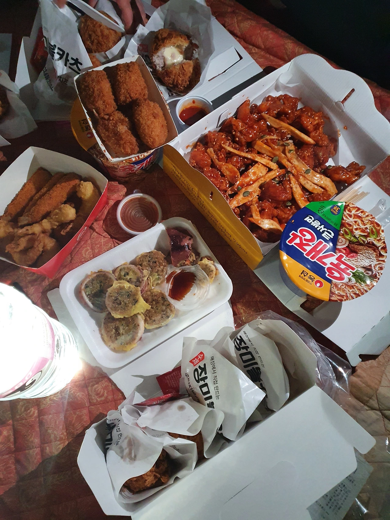 오징어 순대. 예은님과 찌찌뽕(?)한 볼카츠. 더덕 닭강정. 육개장. 새우 튀김 느글느글해서 더 이상 안 들어갈 때까지 질리도록 실컷 먹었다.