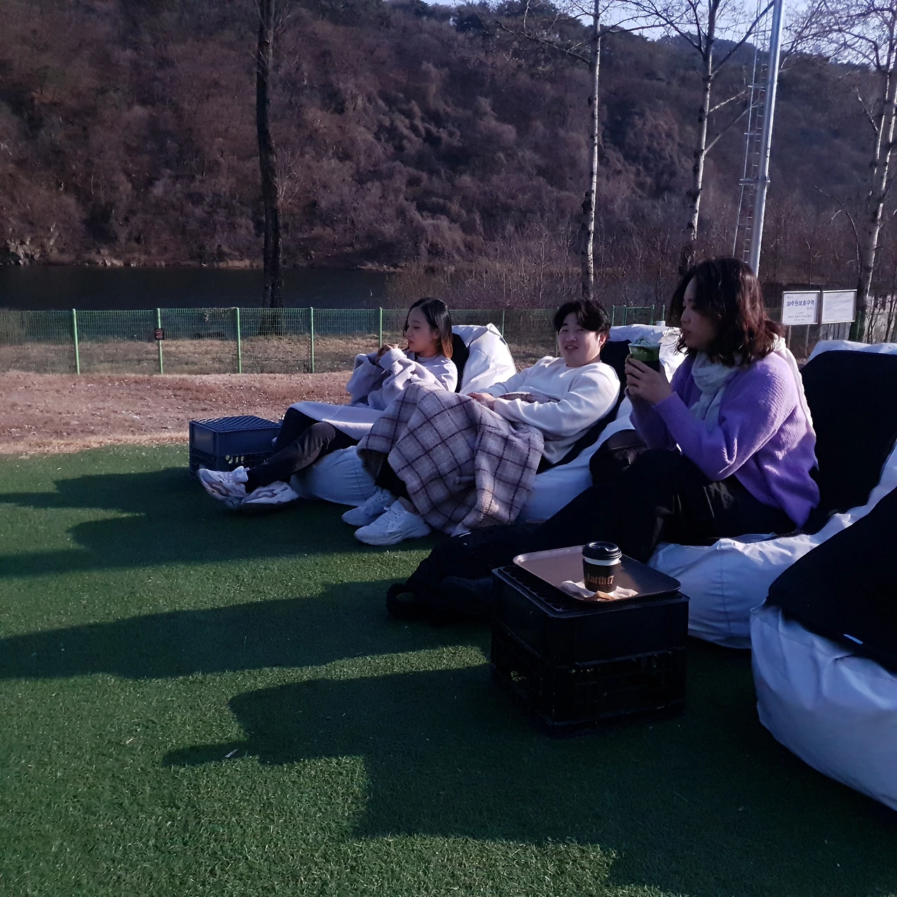 밤밤님이 판을 깔아주신 덕에 모일 수 있었다.혼자였다면 선뜻 오지 않았을 여행을 덕분에 즐길 수 있었다. 예은님과 밤밤님의 100만원 프로젝트와 여러 아이디어들을 듣는데 흥미로웠다. 밤밤님의 아이디어들은 참 좋다. 계속 새로운 시도를 하시는데 응원해주고 지지하고 싶다. 추운 야외에서 혼자 초록이 곁들여진 아이스크림을 시키고 봄느낌을 내겠다며 얇게 입었는데 쌀쌀해지기 시작했다. 넘 춥기 직전에 다른 장소를 툭 던져주셨다.
