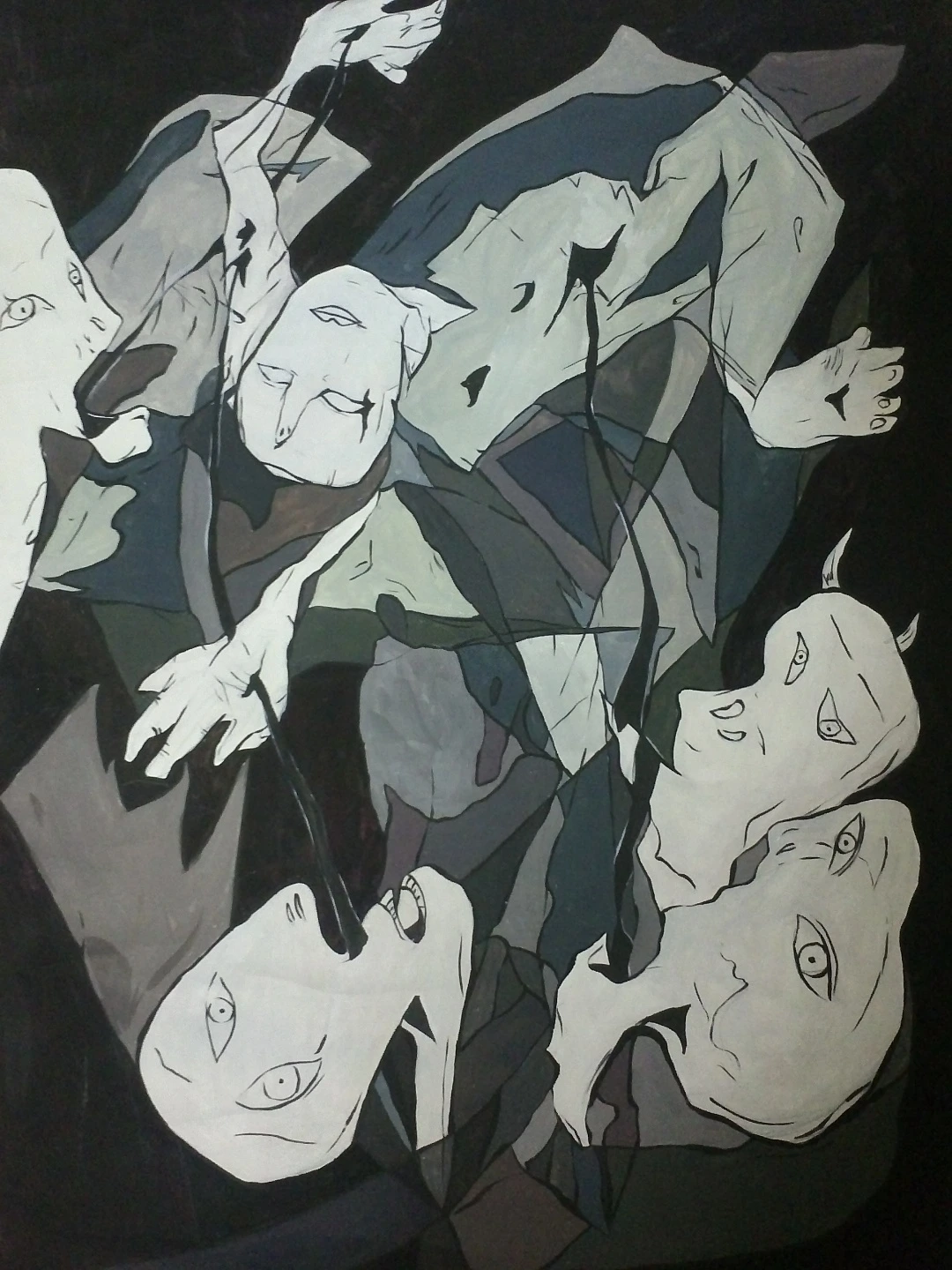 초등학생 때 사람들의 말 한마디는 게르니카 속 전쟁터의 참혹함과 별 다를바가 없다는 생각이 들어 그렸었다. <사람을 죽이는 말들>