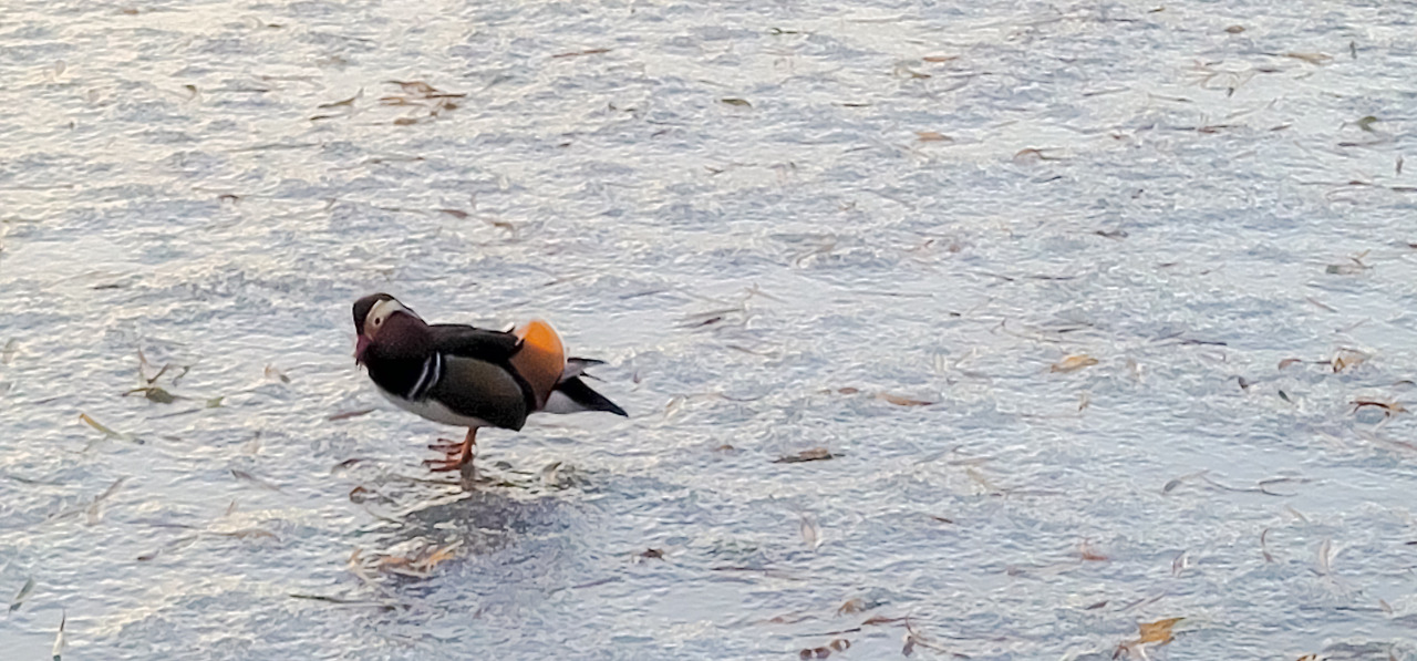 무리의 우두머리처럼 보이는 한 마리가 내가 서 있는 쪽의 얼음 위로 올라오자, 다른 원앙들도 하나둘씩 빙판 위로 올라와 각자 물기를 털어내며 몸을 정돈한다. 사람들이 말로써 대화를 하고 의사소통하듯, 원앙들도 다양한 울음소리나 몸짓 등 그들만의 소통수단이 있다. 우리는 그들이 직접 되어보지 않는 이상 이것을 온전히 이해할 순 없다. 적어도 지금은 그렇다.