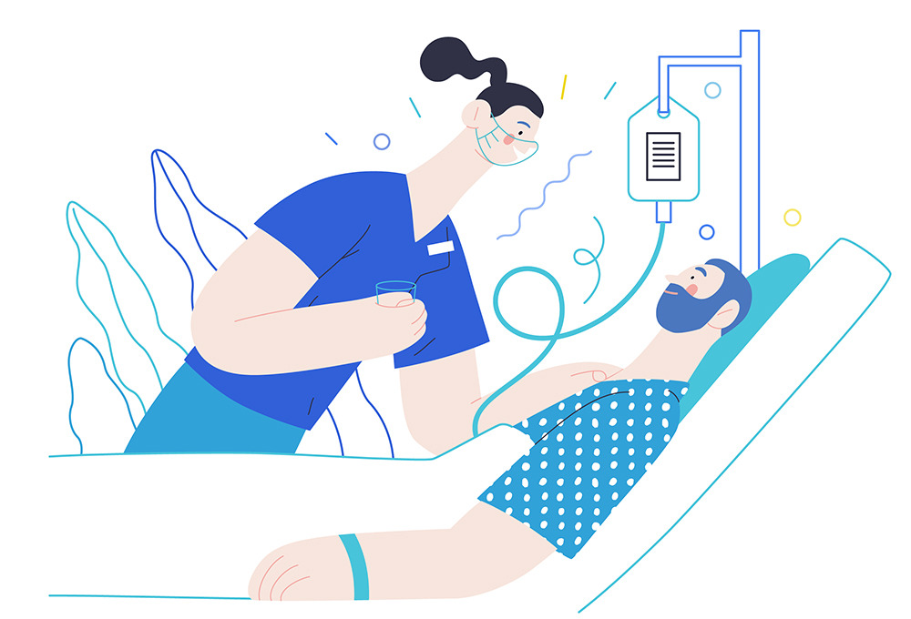 간호사: (장비를 세팅하고 주사를 챙겨준다.)