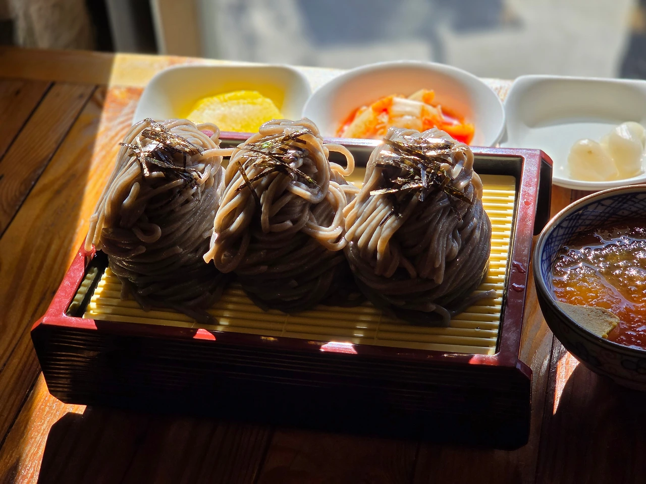 정겨운 할머니가 맞아주신다. 편견이었을까? 젊은 사람이 운영할 거라 생각했다. 힙하지 않은가. 일식을 하고 있고, 주 4일만 운영한다. 이런 곳에서 할머니가 나올 거란 생각을 못했다. 흥미로움을 느꼈다. 혼자 왔기 때문에 1인석으로 안내해 주신다. 창문을 마주한 자리다. 내가 좋아하는 자리다. 바깥 풍경을 볼 수 있는 자리라니. 운이 좋다.