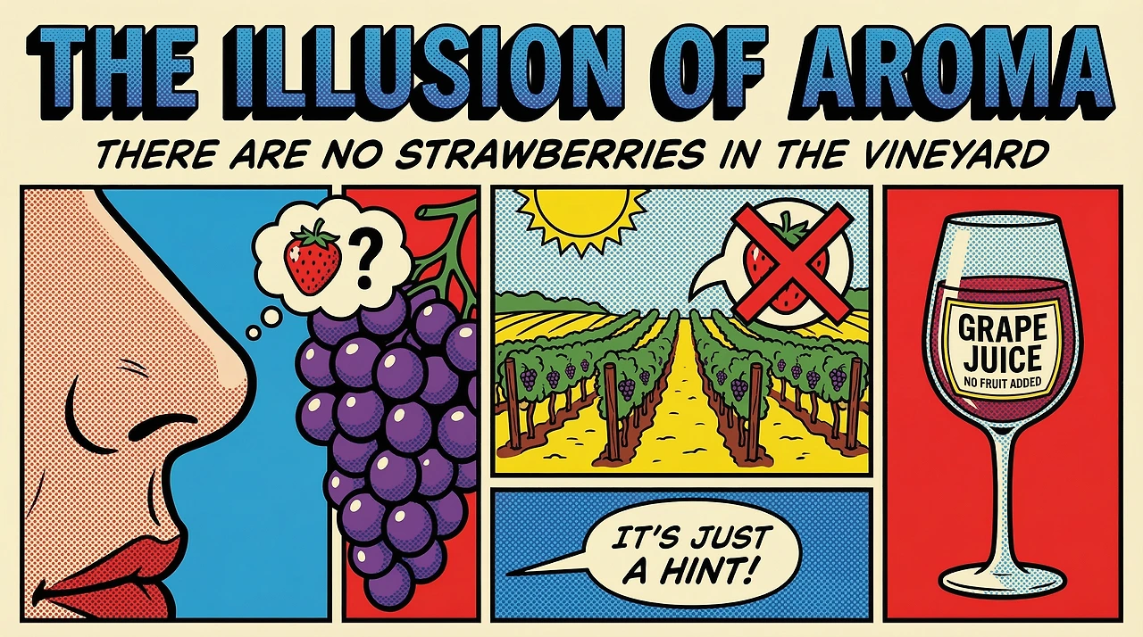포도즙이 발효되면서 알코올이 생길 때, 수백 가지의 휘발성 화합물이 부산물로 만들어진다. 그런데 우연히도, 이 화합물의 분자 구조가 실제 과일이나 사물의 향 분자와 일치하는 경우가 있다.