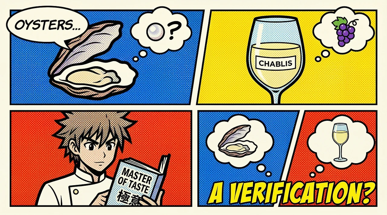 음식 만화의 바이블 <맛의 달인(Oishinbo)>의 <양식당의 고뇌> 편에는 굴과 와인의 궁합을 다룬 흥미로운 에피소드가 등장한다. 프랑스 레스토랑에서 생굴을 먹으려는 주인공 야마오카가 "생굴과 어울리는 와인은 없고, 사케가 어울린다"며 셰프를 상대로 도발적인 발언을 던지는 장면이다.