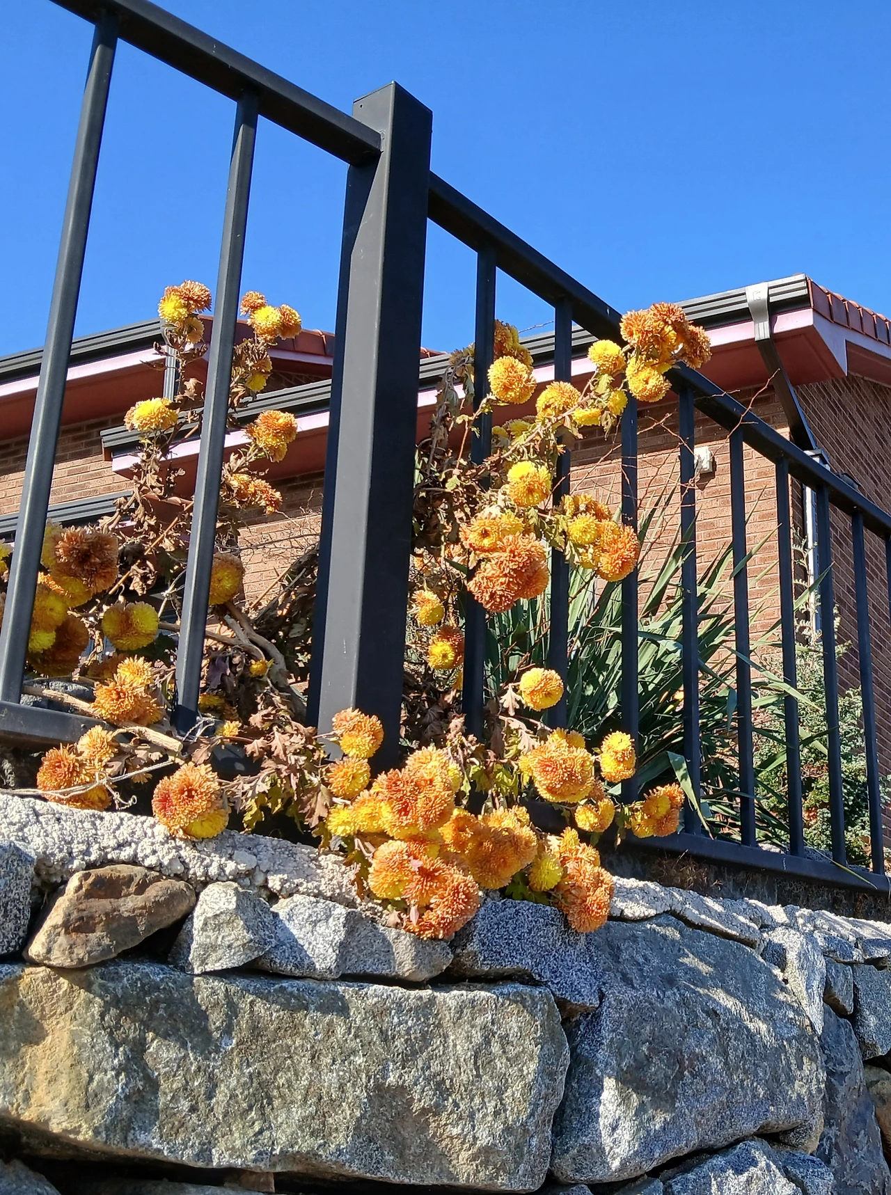 *며칠 전 눈폭탄을 맞은 국화들이 눈 무게를 못이겨 완전 짜부러졌습니다.