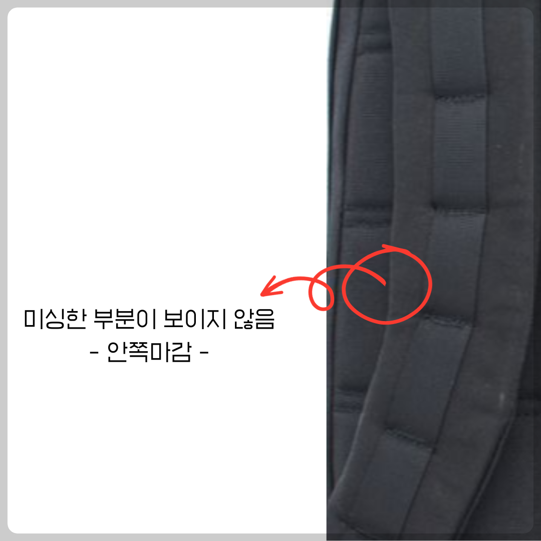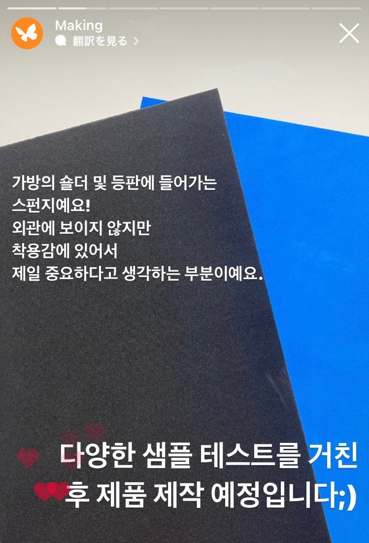 숄더를 이야기하면서 빠질 수 없는 것이 스펀지입니다. 착용감을 결정짓는 중요한 부분이니까요. 그러나 스펀지에 대해서는 가방을 제작하는 분이 아니고서야 알 수 없는 부분이라고 생각해요. 그래서 인스타그램에서도 제가 가방 안에 들어가는 스펀지 샘플을 강조한 이유이기도 합니다.