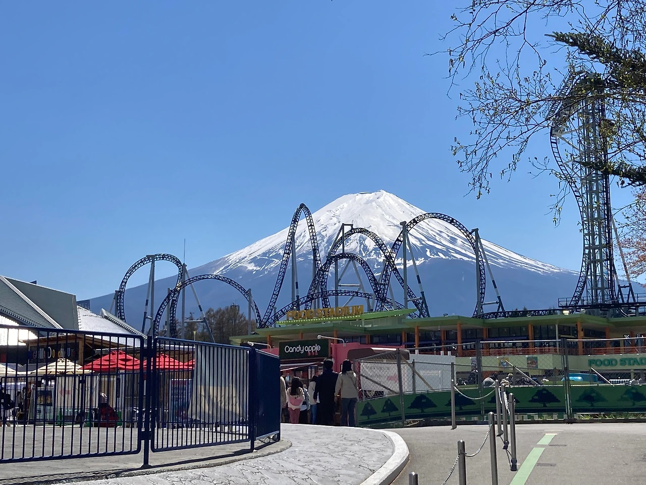 일본의 놀이동산이라고 하면 도쿄에 있는 디즈니랜드와 오사카에 있는 유니버셜이 떠오를 실 거예요. 그런데 도쿄 근교에 후지 Q 하이랜드라는 놀이동산에서는 어느 곳이든 후지산을 볼 수 있으며, 놀이동산 안에 있는 관람대 위에서 이렇게 멋진 기념사진도 찍을 수 있습니다.