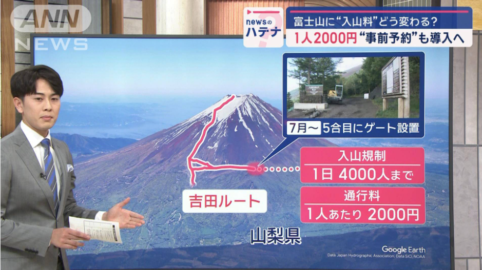 올해부터 요시다루트 5 합목에 있는 게이트 통과 시 등하산 도로 사용료로 1인당 2,000엔과 후지산 보전 협력금 1,000엔을 더해 총 3,000엔이 부과됩니다.