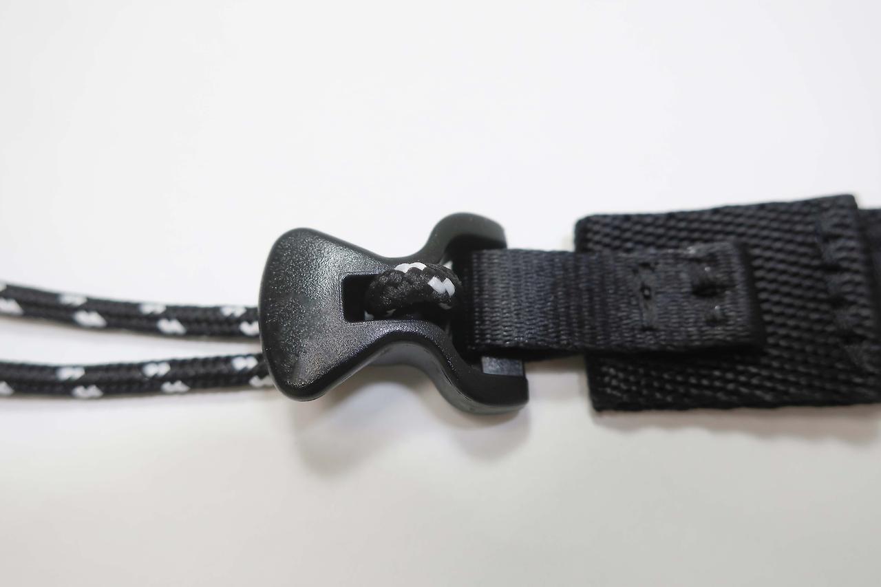 : 움직이는 상황에서도 쉽게 길이 조절을 할 수 있도록, 특별한 플라스틱 스토퍼(Plastic stopper)를 사용했습니다.