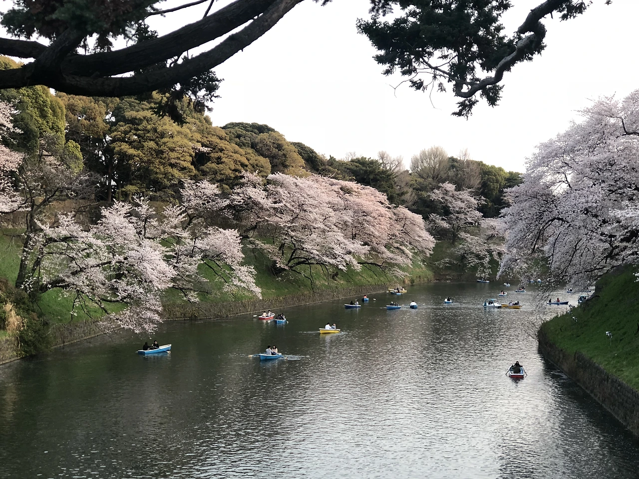 황궁 주위를 둘러싸고 있는 해자 중 한 곳인 "치도리가후치"는 옛 건물의 멋과 벚꽃을 같이 즐길 수 있기에 인기가 많은 곳 중 하나입니다. 특히 벚꽃이 피는 기간에는 보트를 타며 벚꽃을 즐기려는 인파로 무척 붐벼 기본적으로 몇 시간씩 보트를 타기 위해 줄을 서야 합니다. 그렇기에 기다리며 시간을 보내기보다는 황궁 주변을 걷거나 가볍게 달리며 벚꽃을 즐기는 것도 또 하나의 방법이라고 생각합니다. 황궁 주변은 도쿄에서도 인기 있는 조깅코스 중 하나로 5km의 짧은 코스로 부담 없이 즐기실 수 있습니다.