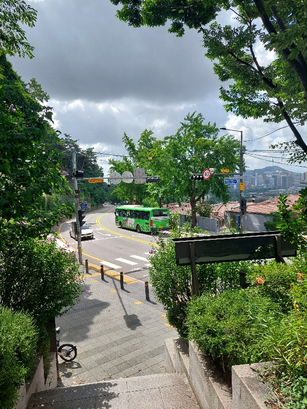 창의문에 가기 전 고갯길 중간에 내려 청운공원으로 향하는 언덕 입구에